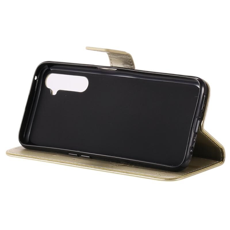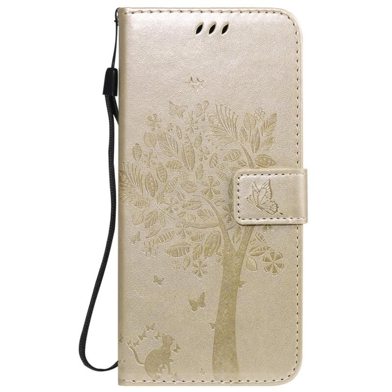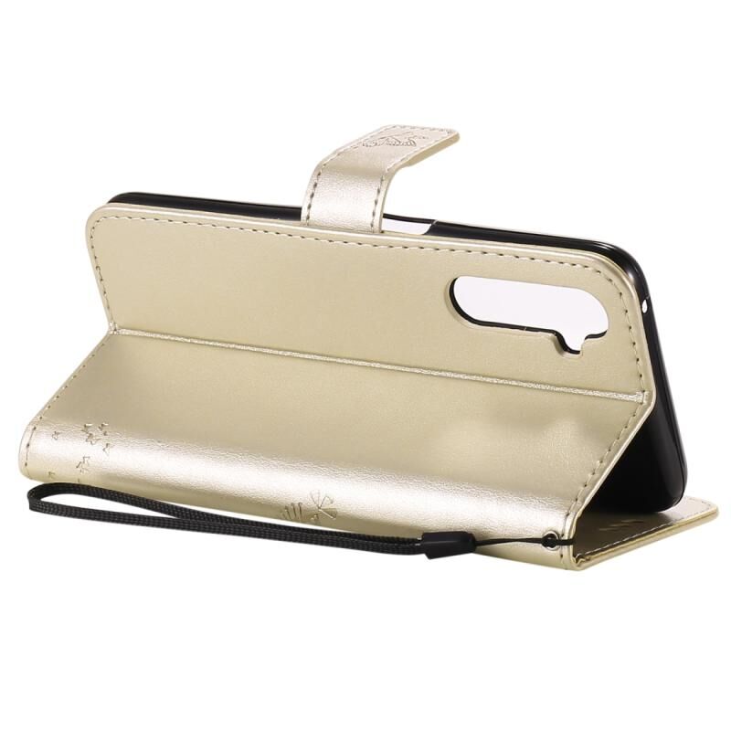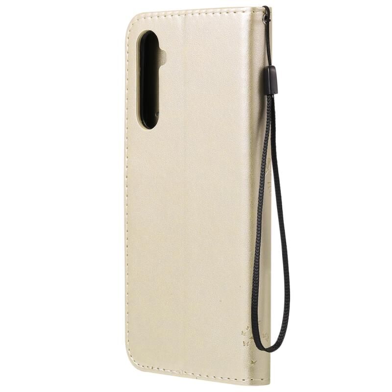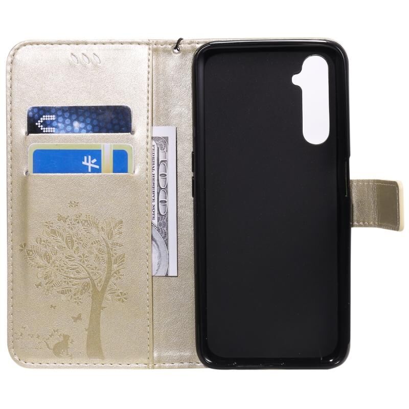Θήκη για OPPO Realme 6 Pro με σχέδιο Δέντρου & Γάτας, εκτυπωμένη με θερμοτύπωση, οριζόντια αναδιπλούμενη από δερματίνη PU με βάση στήριξης & θήκες καρτών & πορτοφόλι & κορδόνι (Πράσινο)