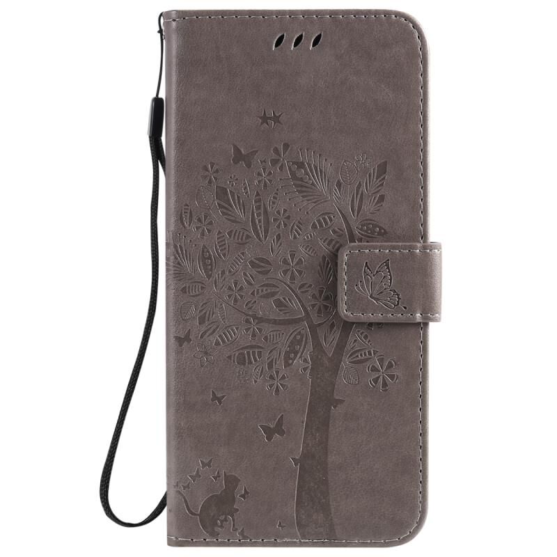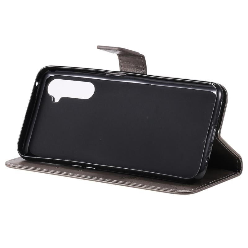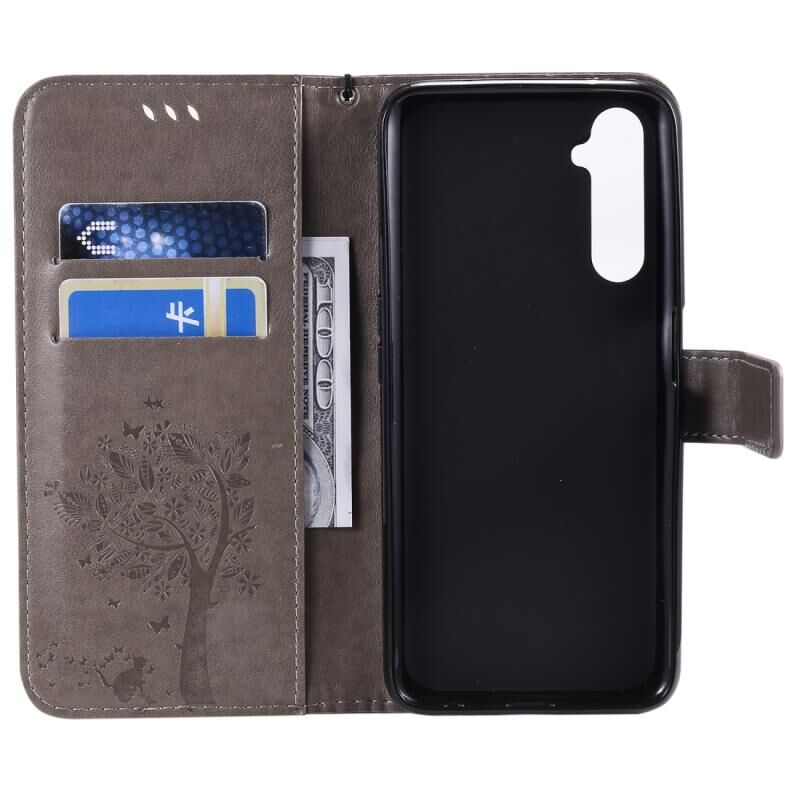 Θήκη για OPPO Realme 6 Pro με σχέδιο Δέντρου & Γάτας, εκτυπωμένη με θερμοτύπωση, οριζόντια αναδιπλούμενη από δερματίνη PU με βάση στήριξης & θήκες καρτών & πορτοφόλι & κορδόνι (Πράσινο)
