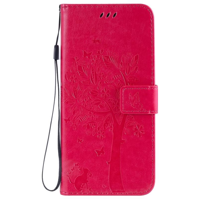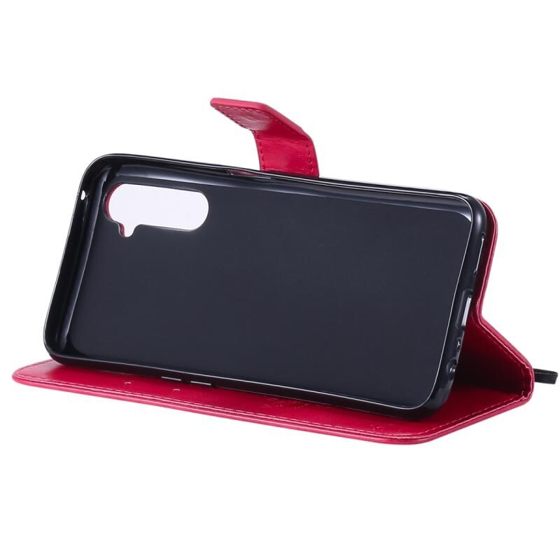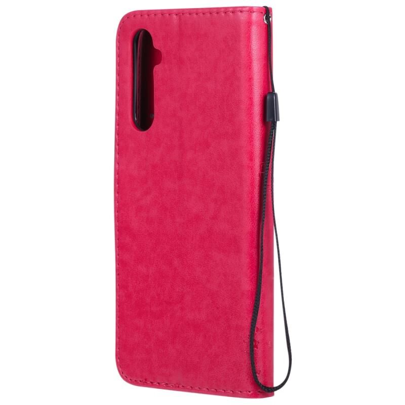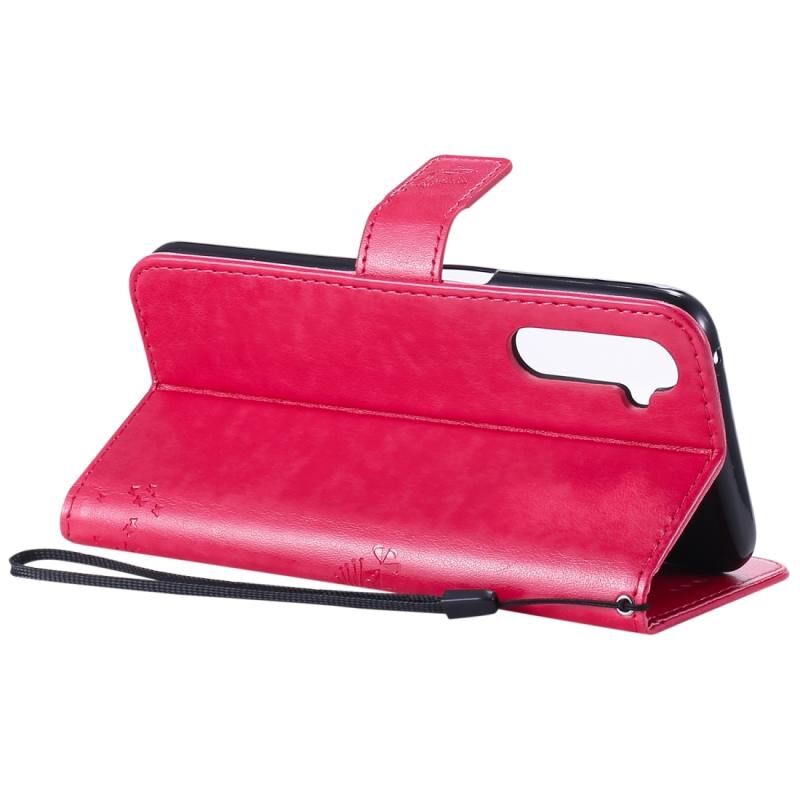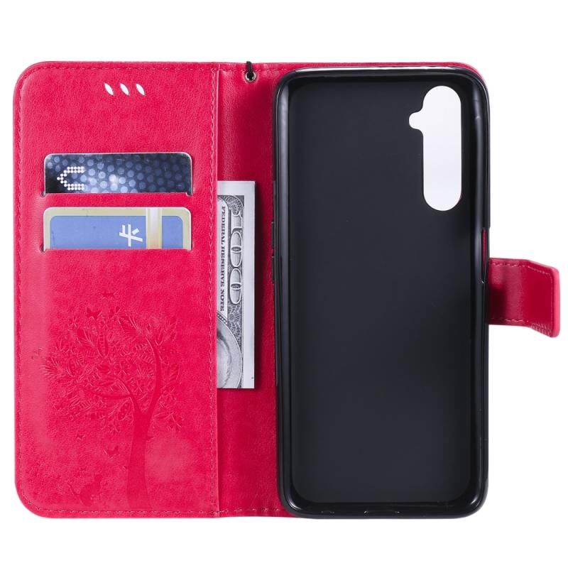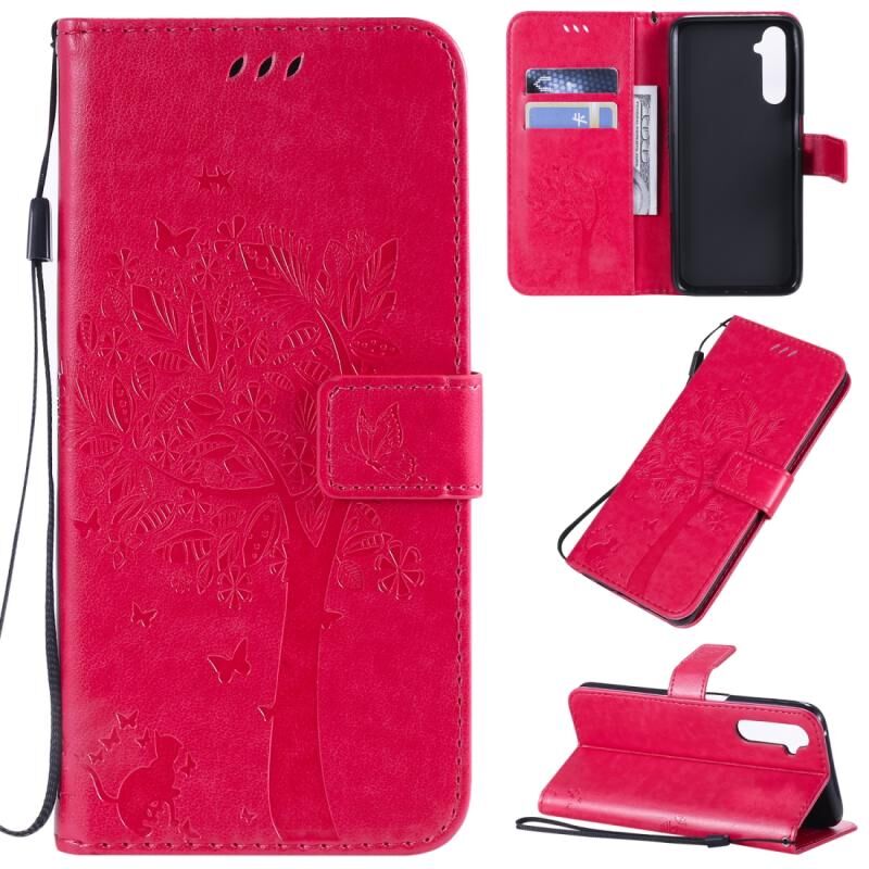Θήκη για OPPO Realme 6 Pro με σχέδιο Δέντρου & Γάτας, εκτυπωμένη με θερμοτύπωση, οριζόντια αναδιπλούμενη από δερματίνη PU με βάση στήριξης & θήκες καρτών & πορτοφόλι & κορδόνι (Πράσινο)