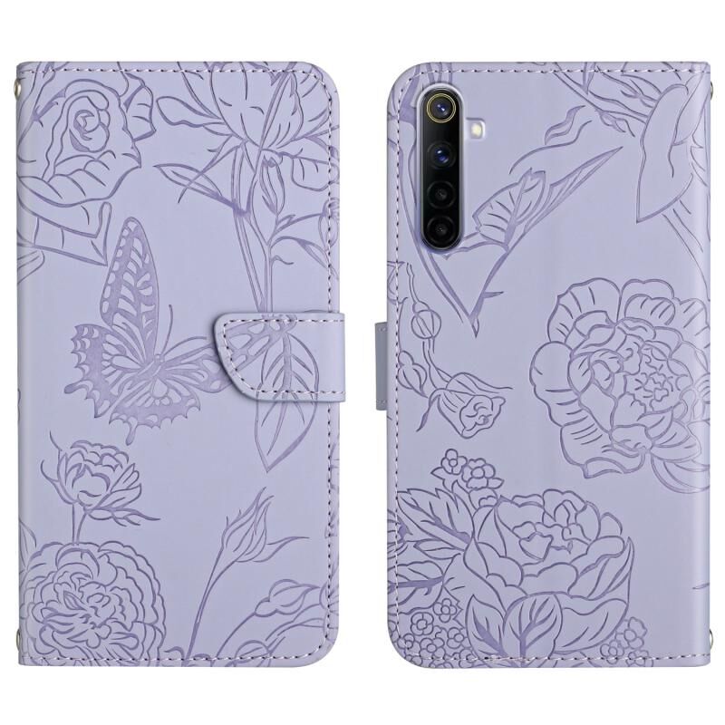 Θήκη τηλεφώνου από δέρμα με ανάγλυφο σχέδιο πεταλούδας και παιωνίας για OPPO Realme 6 (Κόκκινο)