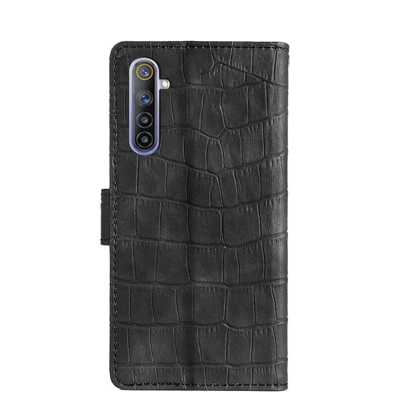 Θήκη τηλεφώνου από δερματίνη PU με μαγνητικό κούμπωμα και υφή δέρματος κροκόδειλου για OPPO Realme 6 (Μαύρο)