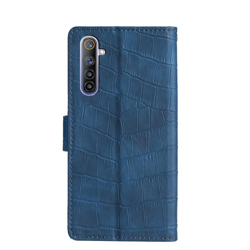 Θήκη τηλεφώνου από δερματίνη PU με μαγνητικό κούμπωμα και υφή δέρματος κροκόδειλου για OPPO Realme 6 (Μαύρο)