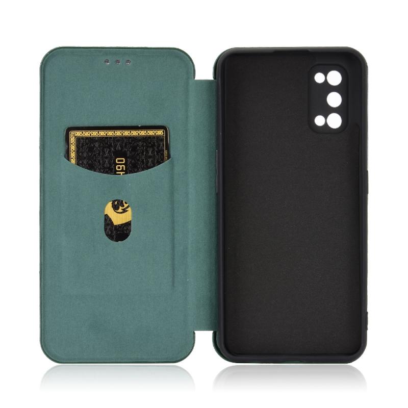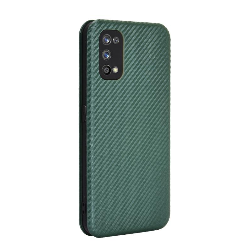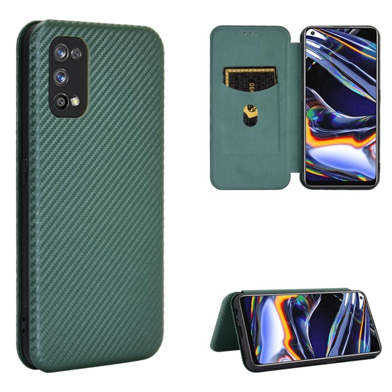 For OPPO Realme 7 Pro Carbon Fiber Texture Horizontal Flip TPU + PC + PU Leather Case with Card Slot(Green)