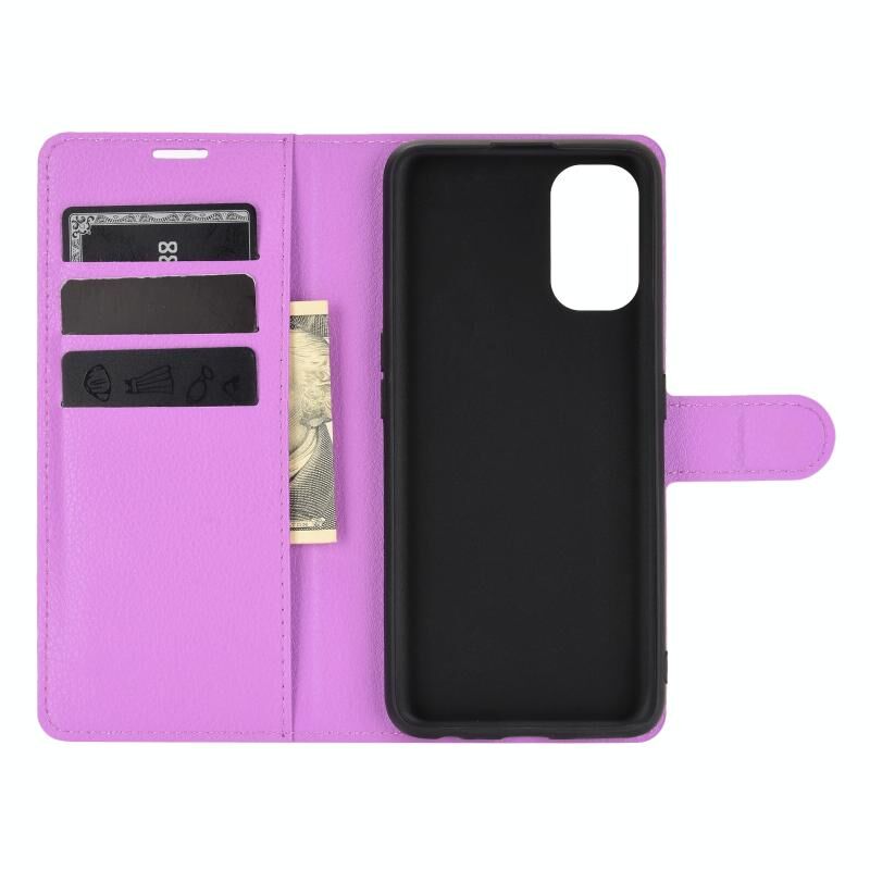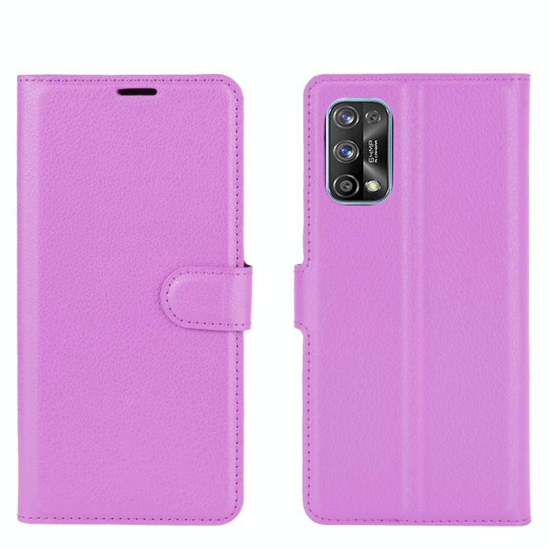 Για OPPO Realme 7 Pro Litchi υφή οριζόντια Flip προστατευτική θήκη με υποδοχή & υποδοχές για κάρτες & πορτοφόλι (μωβ)