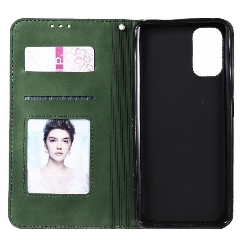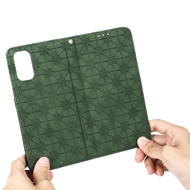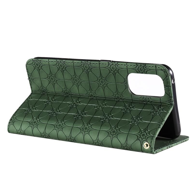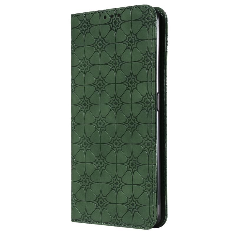 For OPPO Realme 7 Pro Lucky Flowers Embossing Pattern Magnetic Horizontal Flip Leather Case with Holder & Card Slots(Dark Green)