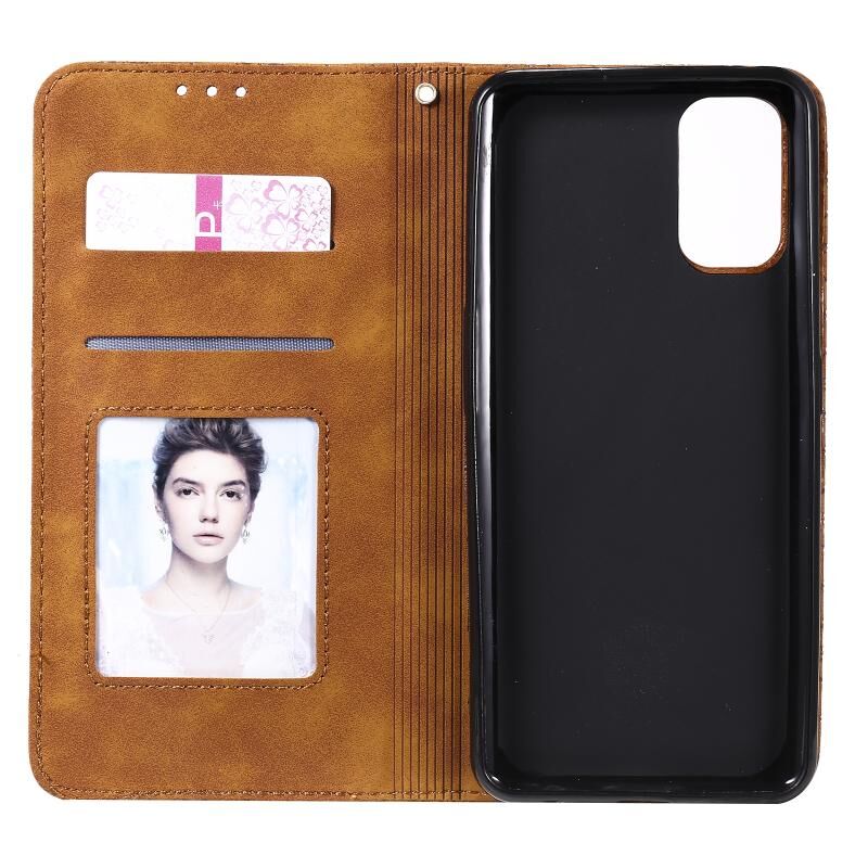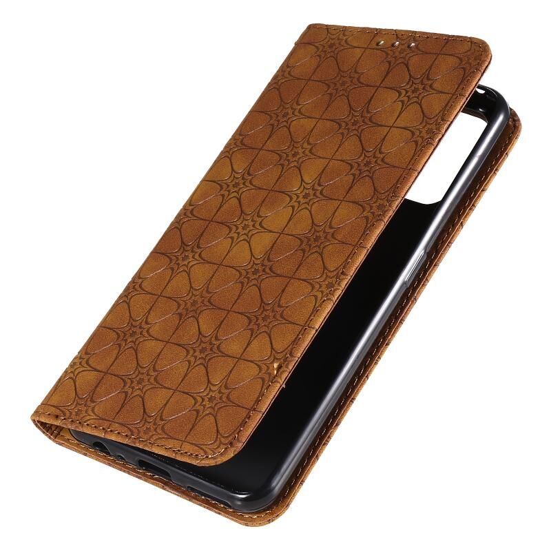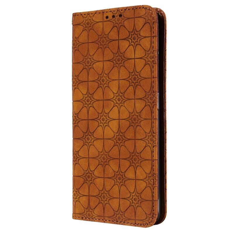 Θήκη δέρματος με μαγνητικό κλείσιμο, οριζόντια, με ανάγλυφο σχέδιο τυχερών λουλουδιών για OPPO Realme 7 Pro, με βάση στήριξης & θήκες καρτών (Σκούρο Μπλε)