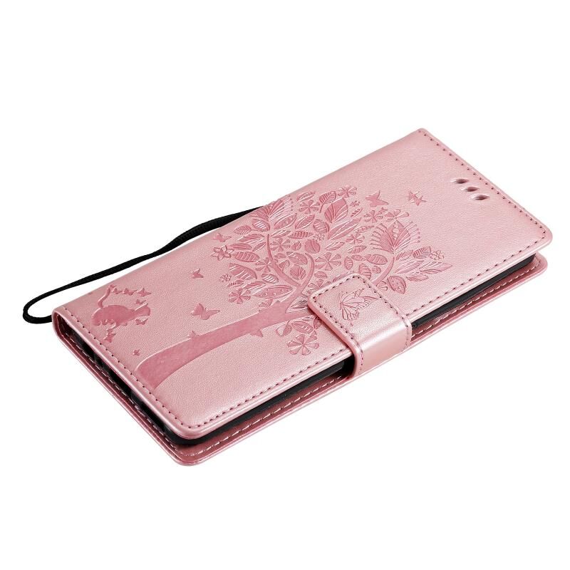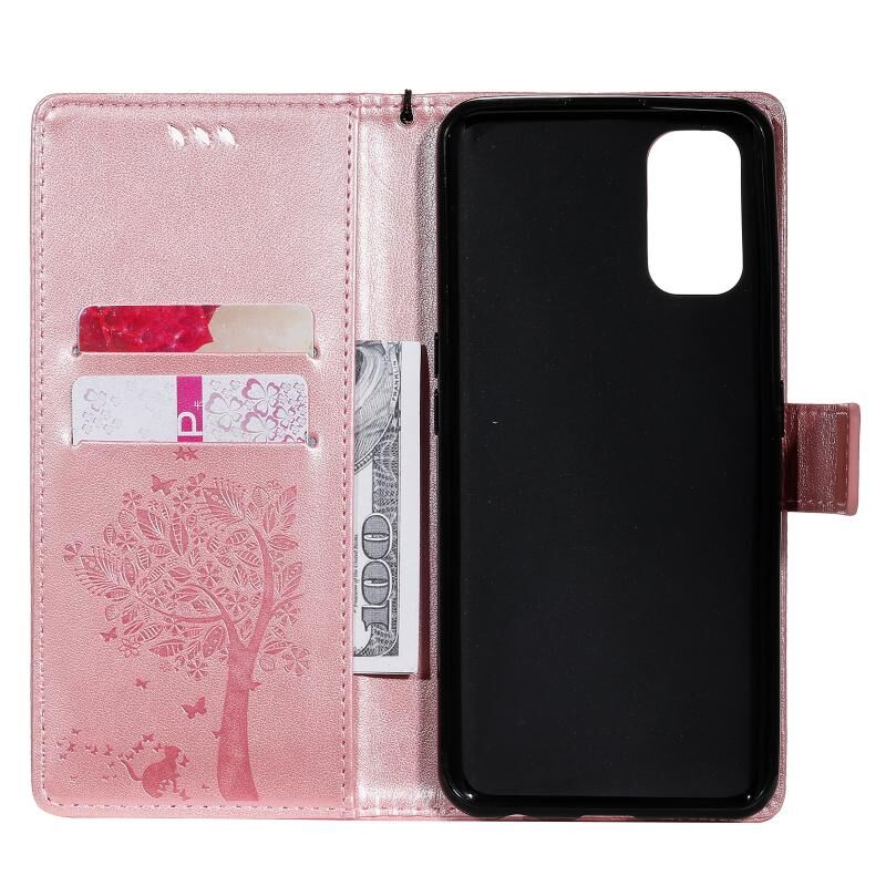 Θήκη για OPPO Realme 7 Pro με σχέδιο Δέντρου & Γάτας, εκτυπωμένη με θερμοτύπηση, οριζόντια αναδιπλούμενη από δερματίνη PU με βάση στήριξης & θήκες καρτών & πορτοφόλι & κορδόνι (Πράσινο)