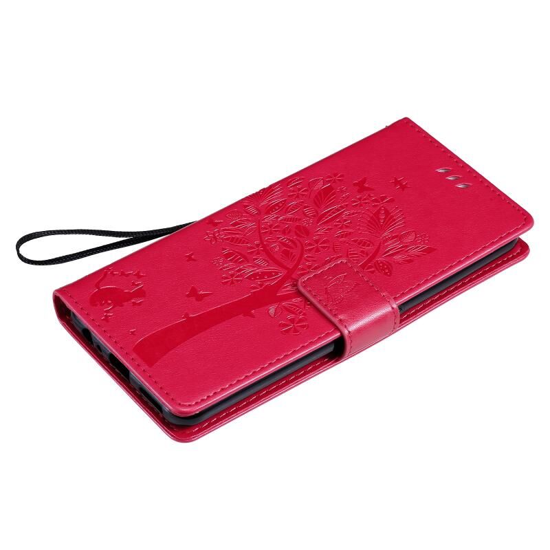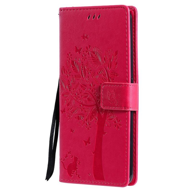 Θήκη για OPPO Realme 7 Pro με σχέδιο Δέντρου & Γάτας, εκτυπωμένη με θερμοτύπηση, οριζόντια αναδιπλούμενη από δερματίνη PU με βάση στήριξης & θήκες καρτών & πορτοφόλι & κορδόνι (Πράσινο)