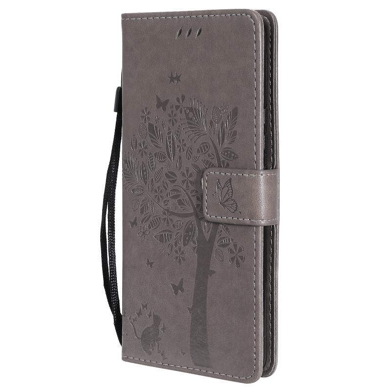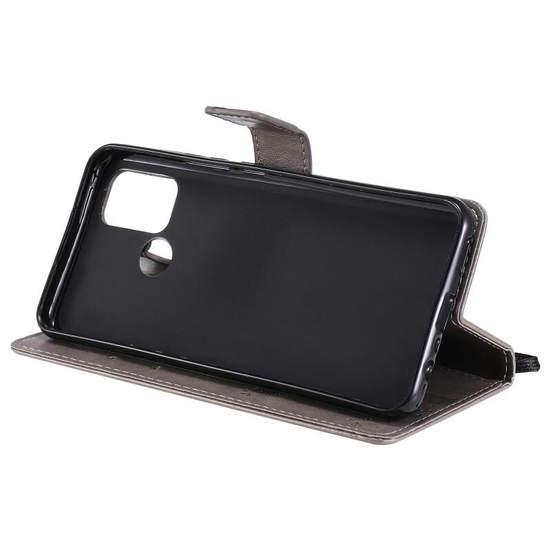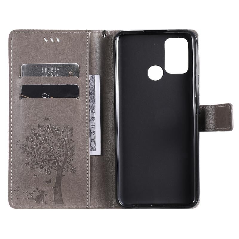 Θήκη για OPPO Realme 7i / C17 με σχέδιο Δέντρου & Γάτας, εκτυπωμένη με θερμοτύπηση, οριζόντια αναδιπλούμενη από δερματίνη PU με βάση στήριξης & θήκες καρτών & πορτοφόλι & κορδόνι (Πράσινο)