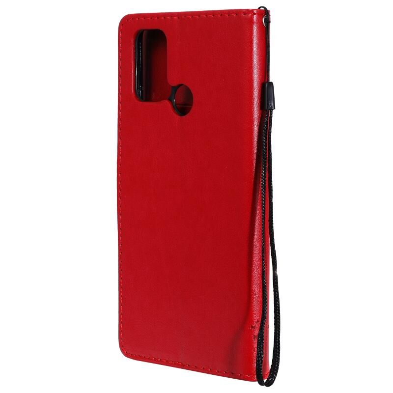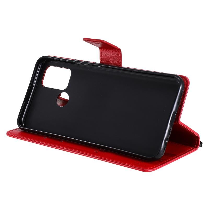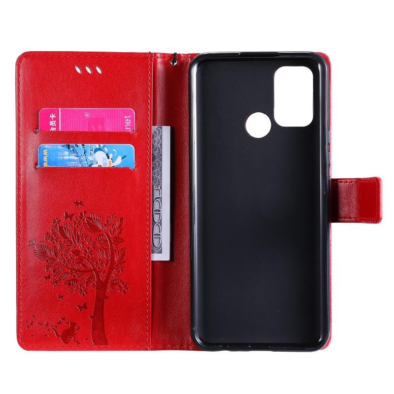 For OPPO Realme 7i / C17 Tree & Cat Pattern Pressed Printing Horizontal Flip PU Leather Case with Holder & Card Slots & Wallet & Lanyard(Red)