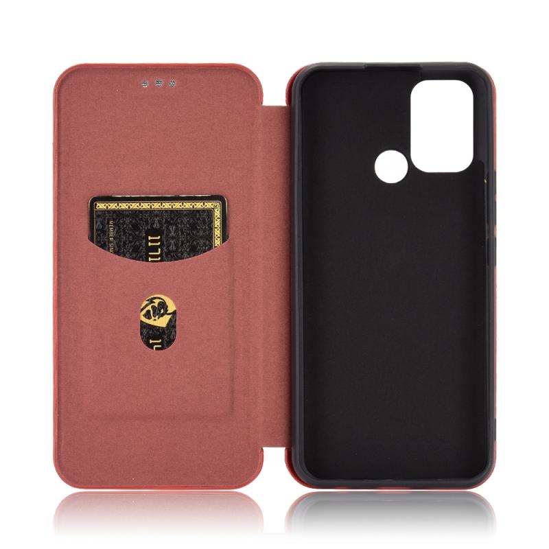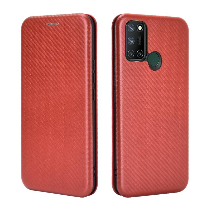 For OPPO Realme 7i Carbon Fiber Texture Horizontal Flip TPU + PC + PU Leather Case with Card Slot(Brown)