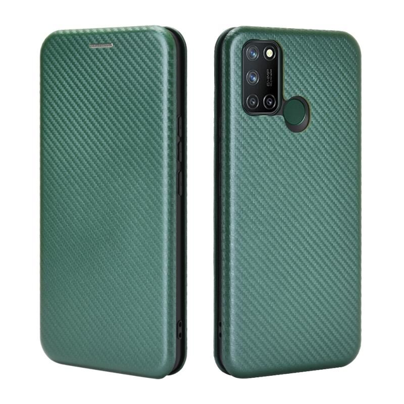 For OPPO Realme 7i Carbon Fiber Texture Horizontal Flip TPU + PC + PU Leather Case with Card Slot(Green)