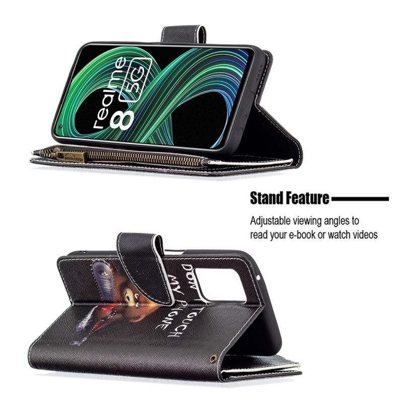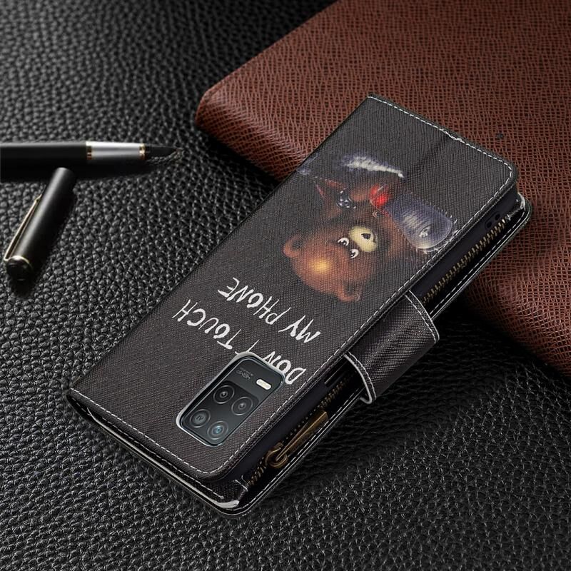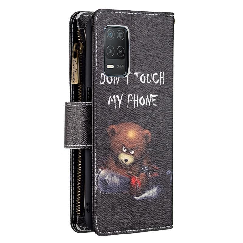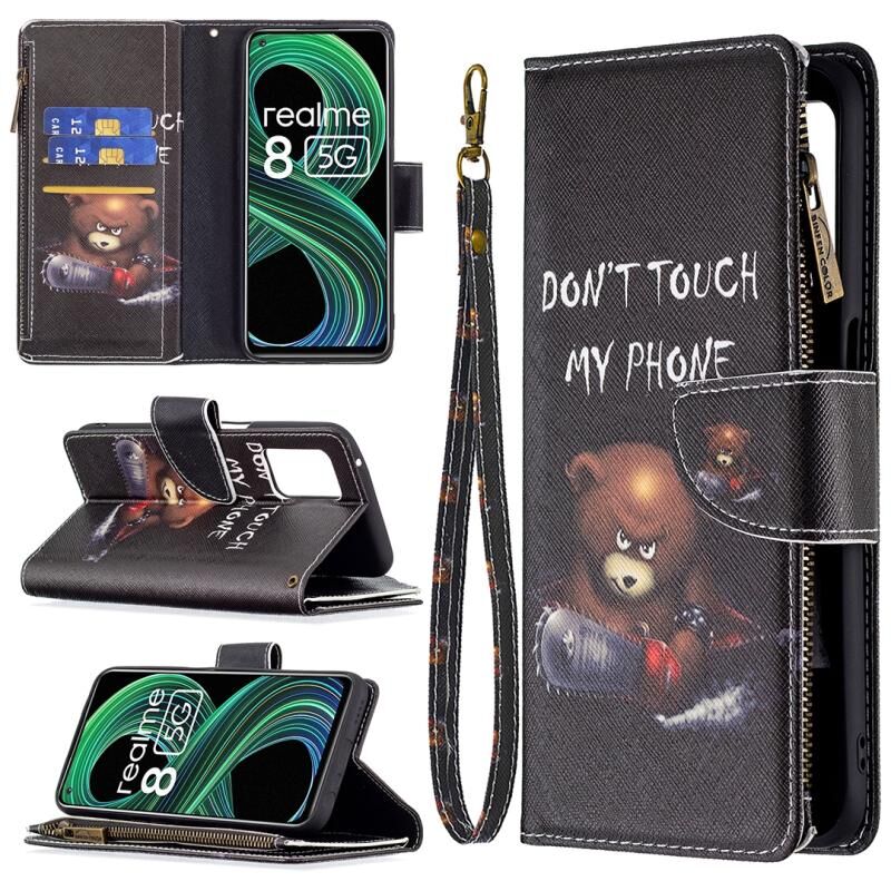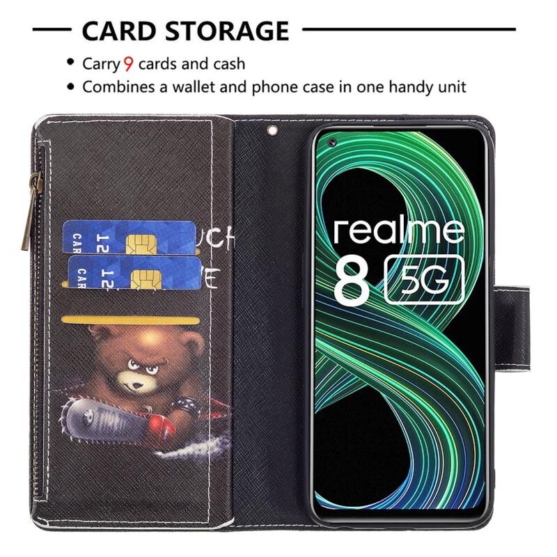 Για OPPO Realme 8 5G/V13 5G Θήκη Δέρματος Οριζόντιας Αναδίπλωσης με Φερμουάρ, Πολύχρωμο Σχέδιο Ζωγραφικής με Θήκη & Θήκες Καρτών & Πορτοφόλι (Αρκούδα)