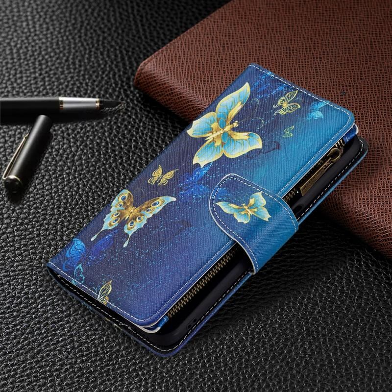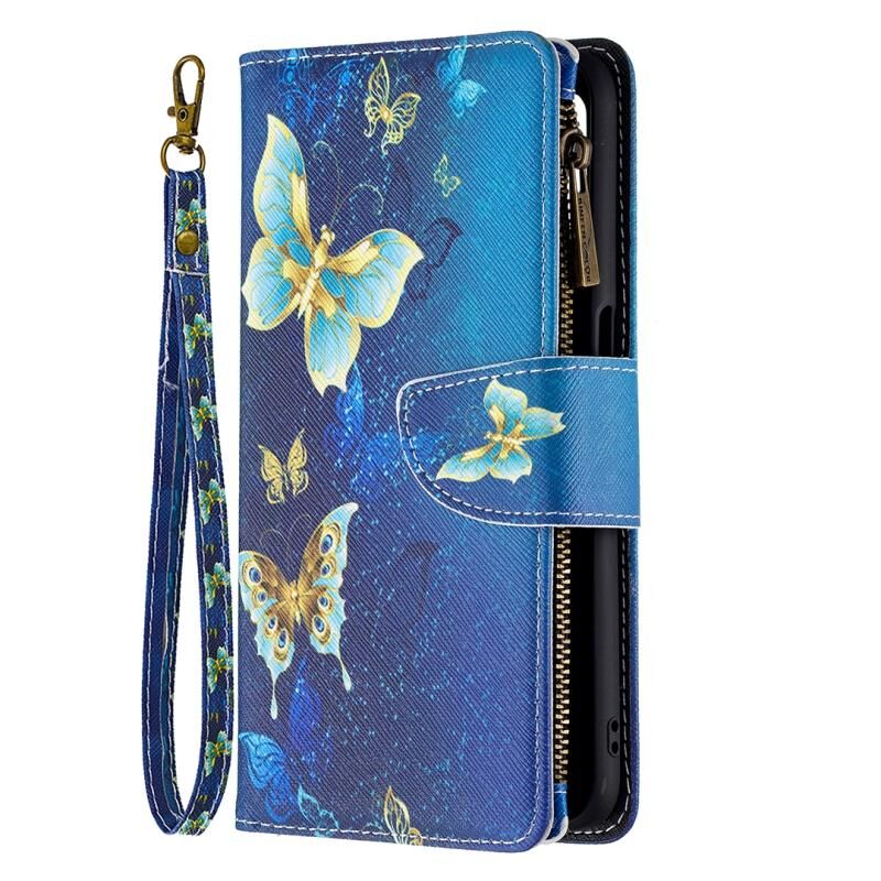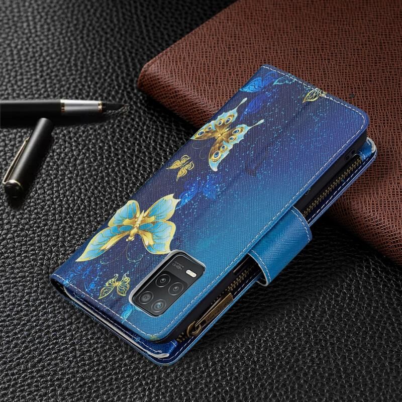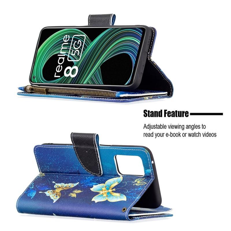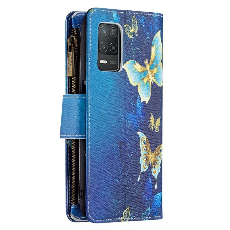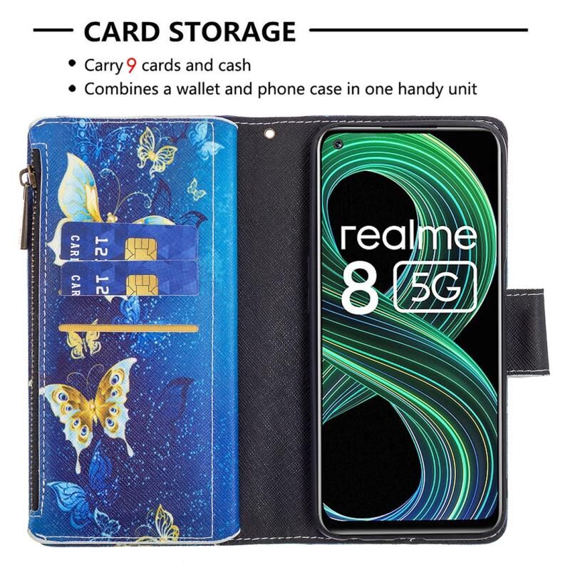 Για OPPO Realme 8 5G/V13 5G Θήκη Δέρματος Οριζόντιας Αναδίπλωσης με Φερμουάρ, Πολύχρωμο Σχέδιο Ζωγραφικής, με Θήκη & Θήκες Καρτών & Πορτοφόλι (Μωβ Πεταλούδα)