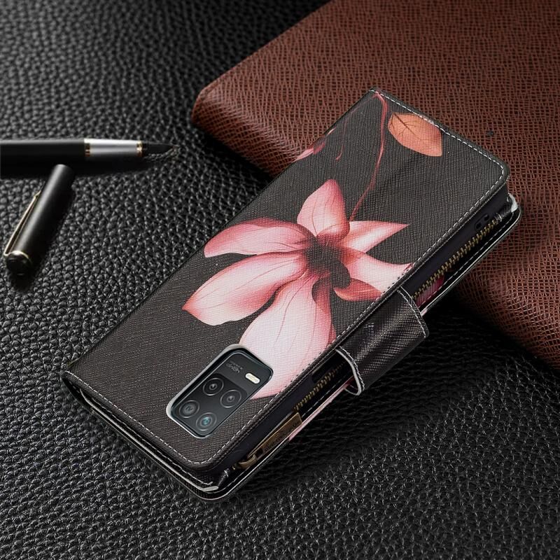 Για OPPO Realme 8 5G/V13 5G Θήκη Δέρματος Οριζόντιας Αναδίπλωσης με Φερμουάρ, Πολύχρωμο Σχέδιο, με Θήκη & Θήκες Καρτών & Πορτοφόλι (Λωτός)