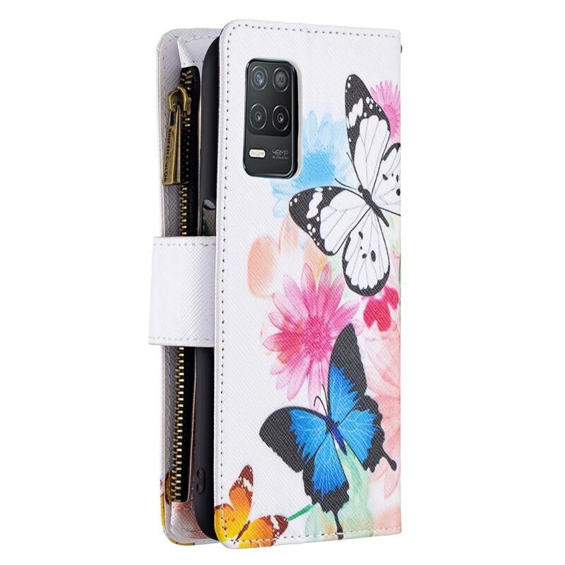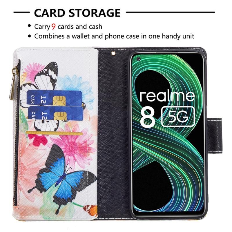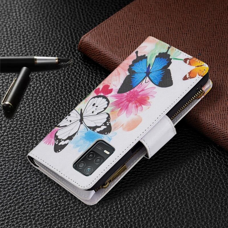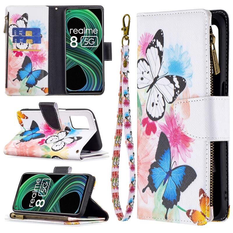 Για OPPO Realme 8 5G/V13 5G Θήκη Δέρματος Οριζόντιας Αναδίπλωσης με Φερμουάρ, Πολύχρωμο Σχέδιο Ζωγραφικής με Θήκη & Θήκες Καρτών & Πορτοφόλι (Δύο Πεταλούδες)