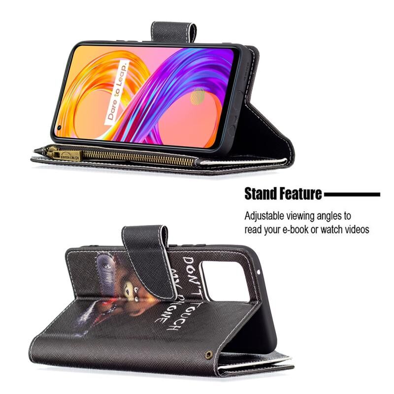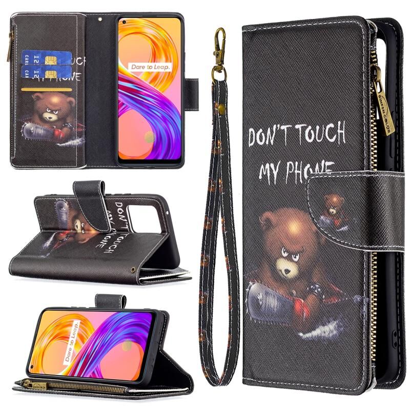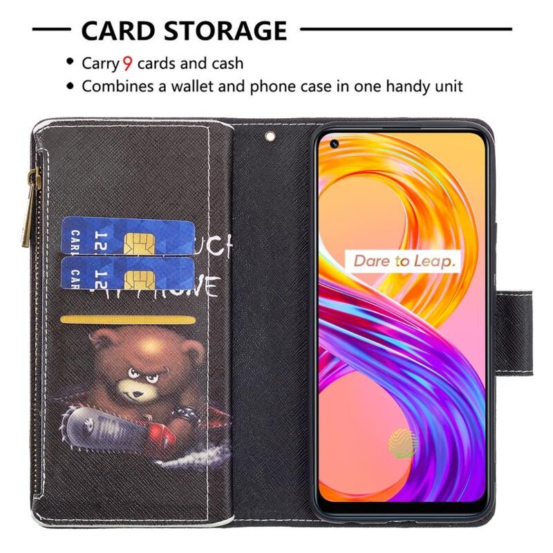 Για OPPO Realme 8 /8 Pro Θήκη Δέρματος Οριζόντιας Αναδίπλωσης με Φερμουάρ, Πολύχρωμο Σχέδιο, με Θήκη & Θήκες Καρτών & Πορτοφόλι (Αρκούδα)
