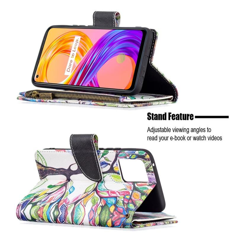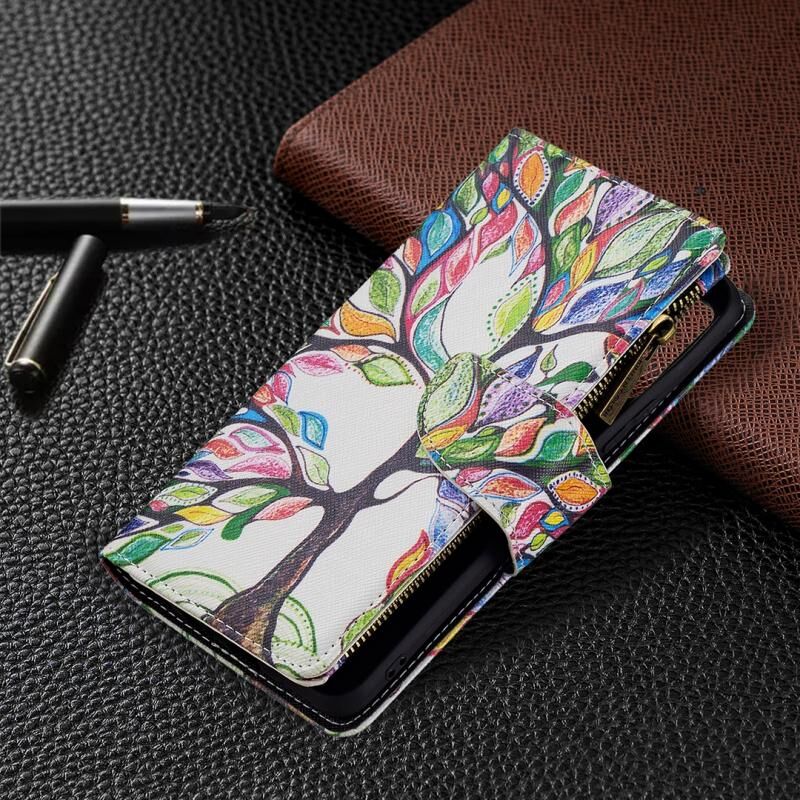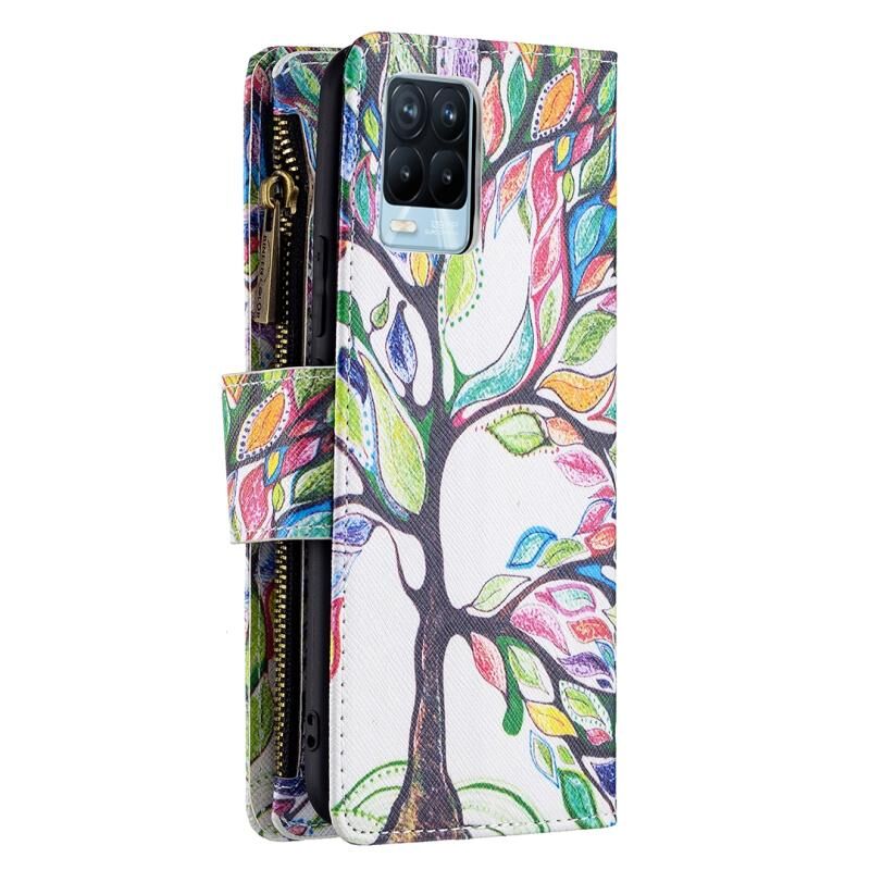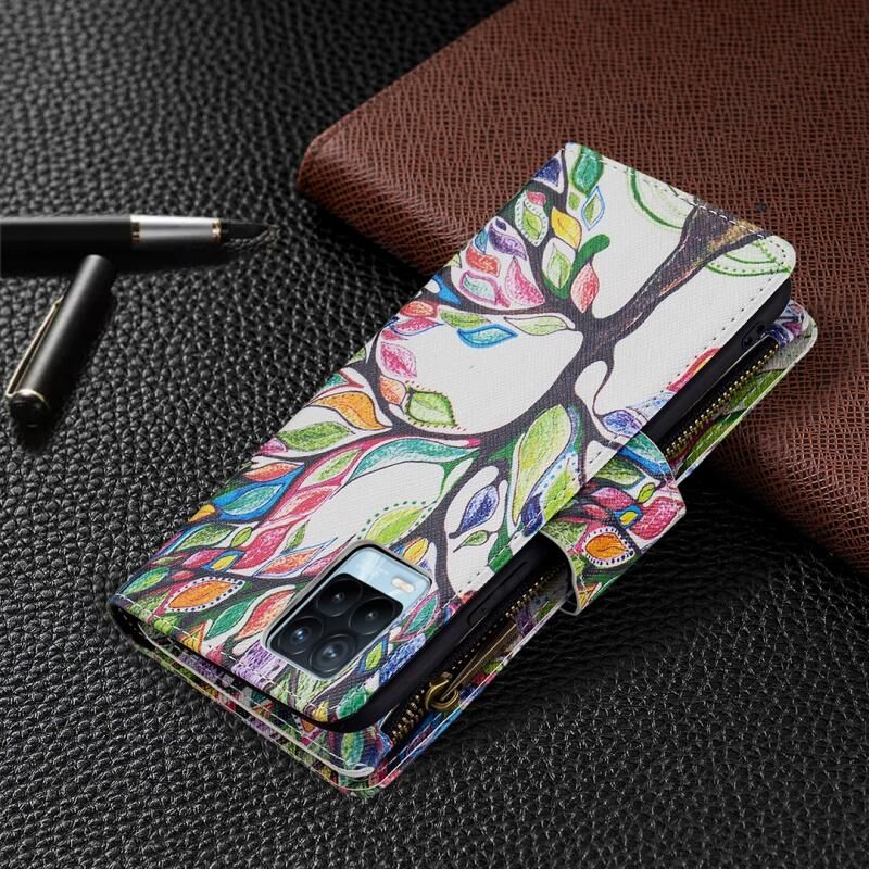 Για OPPO Realme 8 /8 Pro Θήκη Δέρματος Οριζόντιας Αναδίπλωσης με Φερμουάρ, Πολύχρωμο Σχέδιο Ζωγραφικής με Θήκη & Θήκες Καρτών & Πορτοφόλι (Μεγάλο Δέντρο)