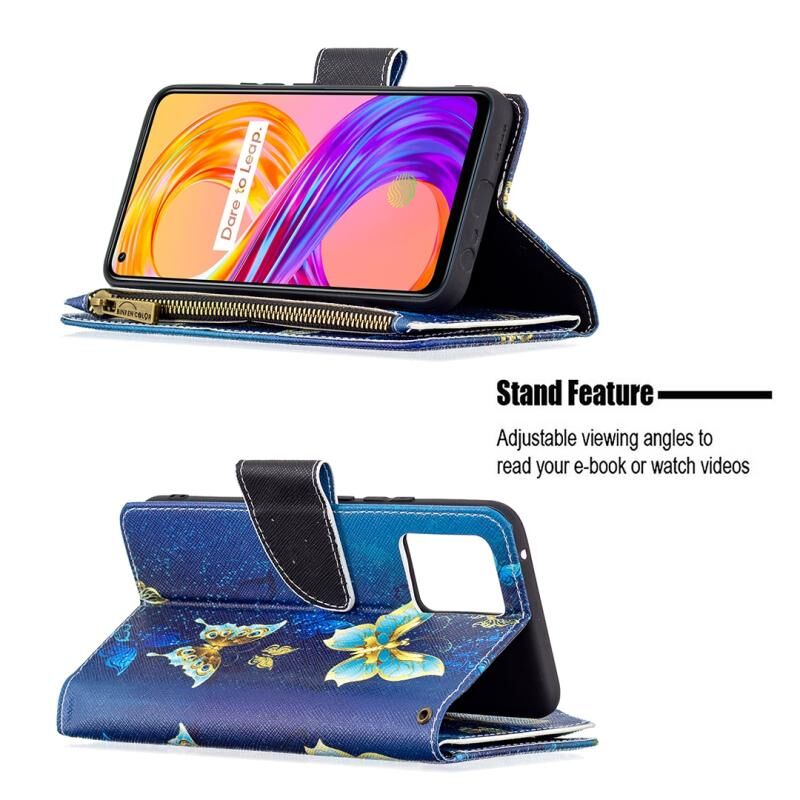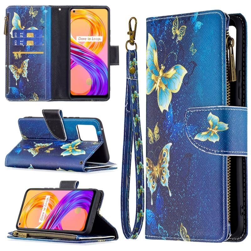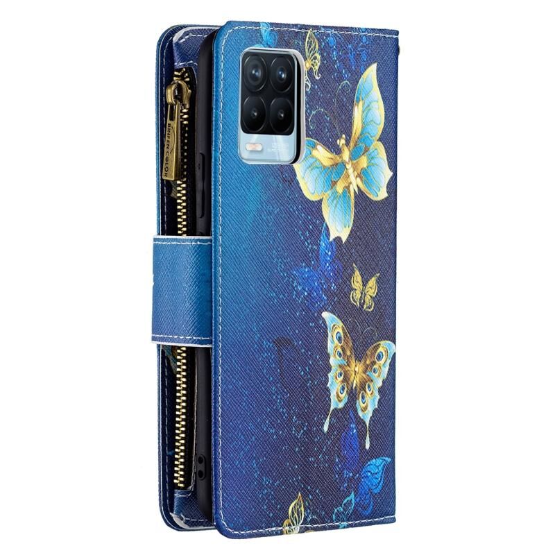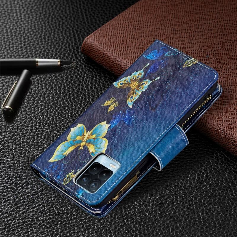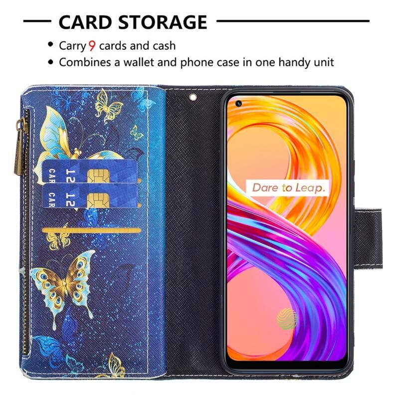 Για OPPO Realme 8 /8 Pro Θήκη Δέρματος Οριζόντιας Αναδίπλωσης με Φερμουάρ, Πολύχρωμο Σχέδιο Ζωγραφικής με Θήκη & Θήκες Καρτών & Πορτοφόλι (Μωβ Πεταλούδα)