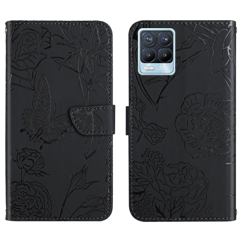 Θήκη τηλεφώνου από δέρμα με ανάγλυφο σχέδιο πεταλούδας και παιωνίας για OPPO Realme 8 / 8 Pro (Κόκκινο)