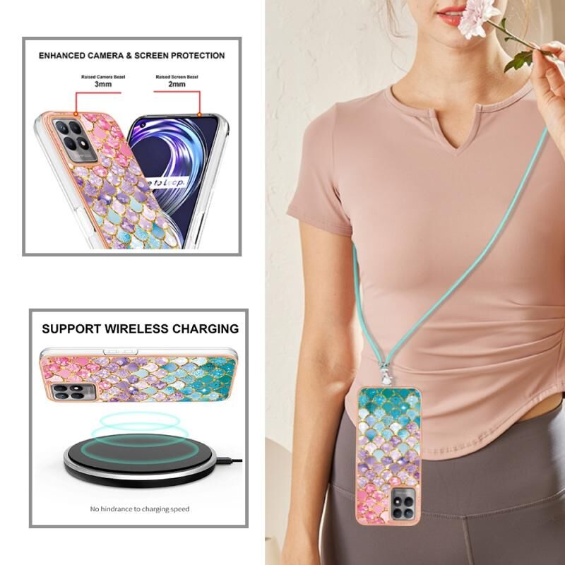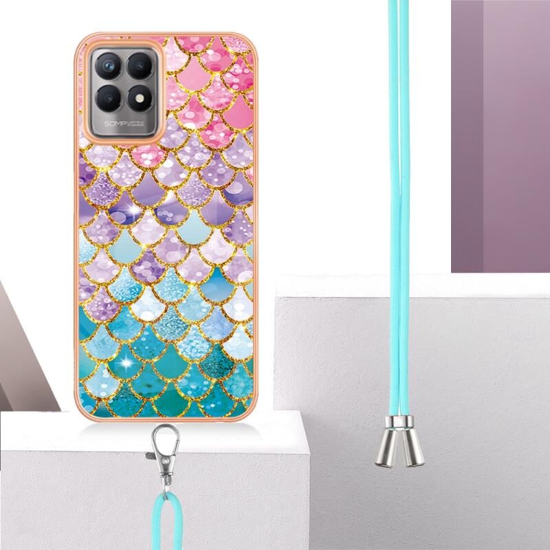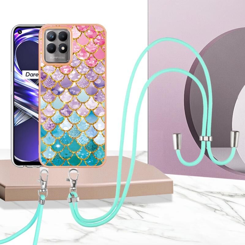Θήκη τηλεφώνου OPPO Realme 8i με επιμετάλλωση IMD TPU με κορδόνι (Πολύχρωμες Λέπια)