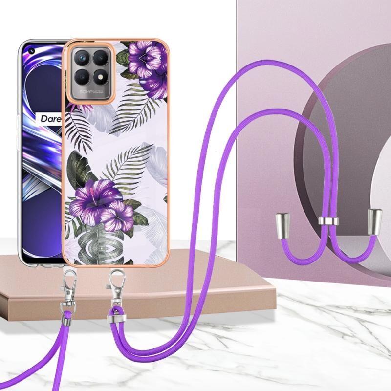 Θήκη τηλεφώνου OPPO Realme 8i με ηλεκτρολυτική επιμετάλλωση IMD TPU με κορδόνι (Ροζ Λέπια)