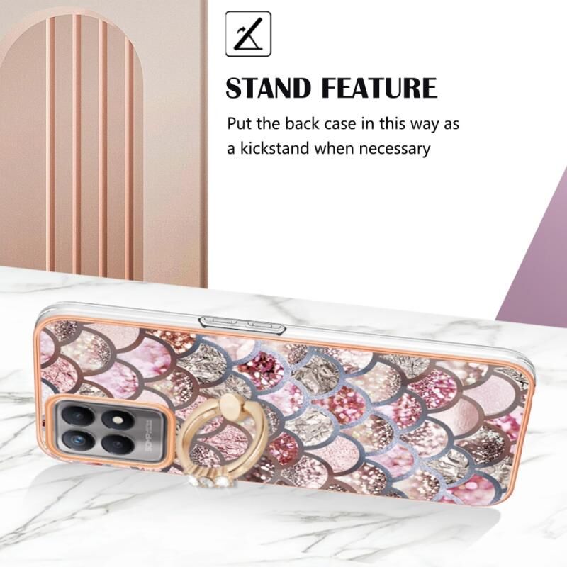 Θήκη τηλεφώνου OPPO Realme 8i με ηλεκτρολυτική επιμετάλλωση IMD TPU με δακτύλιο (Ροζ Λέπια)