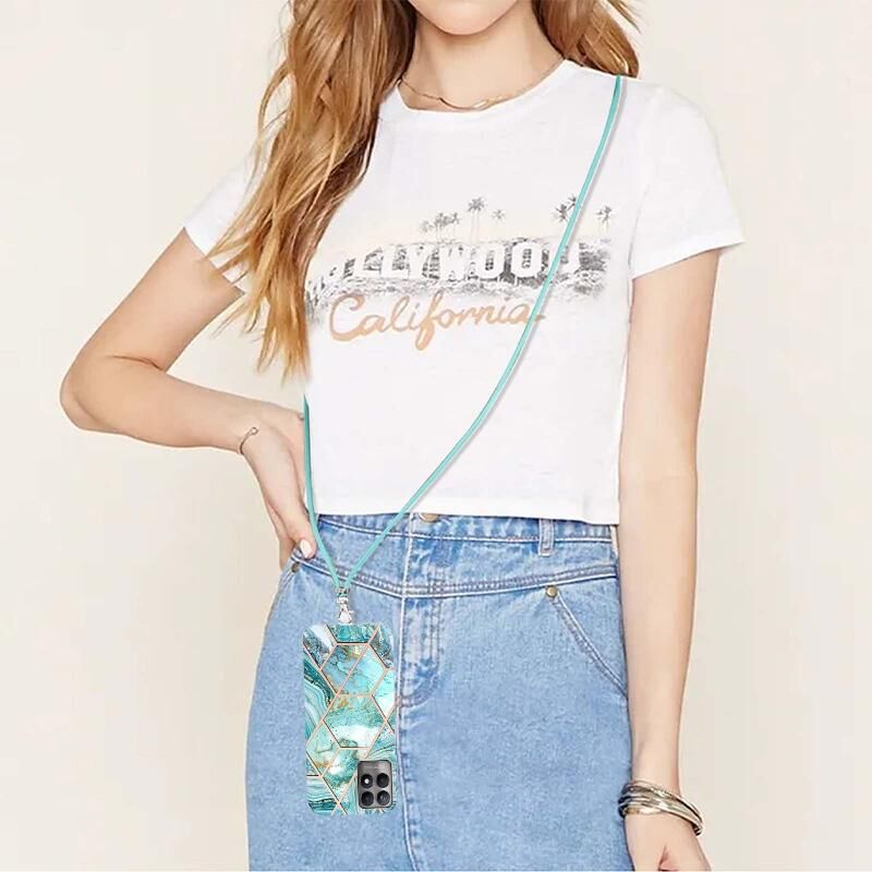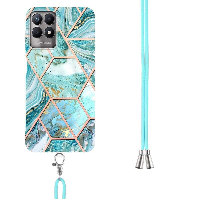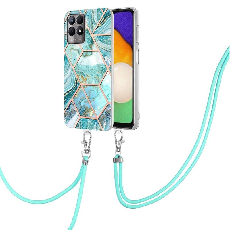 Θήκη τηλεφώνου TPU με γαλβανισμό και ένθετα μαρμάρου για OPPO Realme 8i με κορδόνι (Σκούρο Μωβ)