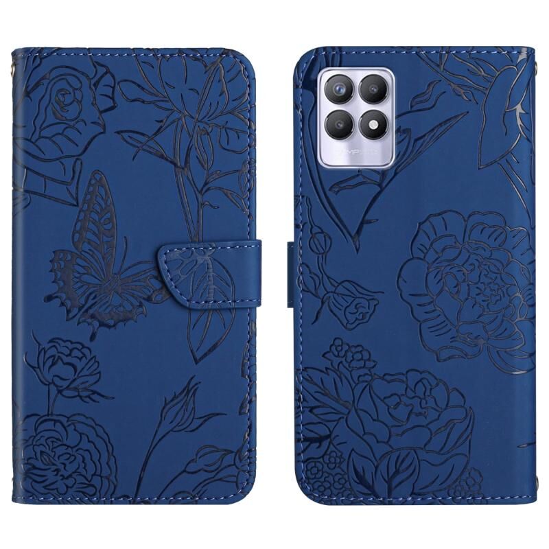 Θήκη τηλεφώνου από δέρμα με ανάγλυφο σχέδιο πεταλούδας και παιώνιας για OPPO Realme 8i (Κόκκινο)