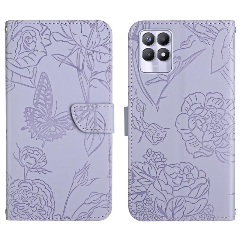 Θήκη τηλεφώνου από δέρμα με ανάγλυφο σχέδιο πεταλούδας και παιώνιας για OPPO Realme 8i (Κόκκινο)