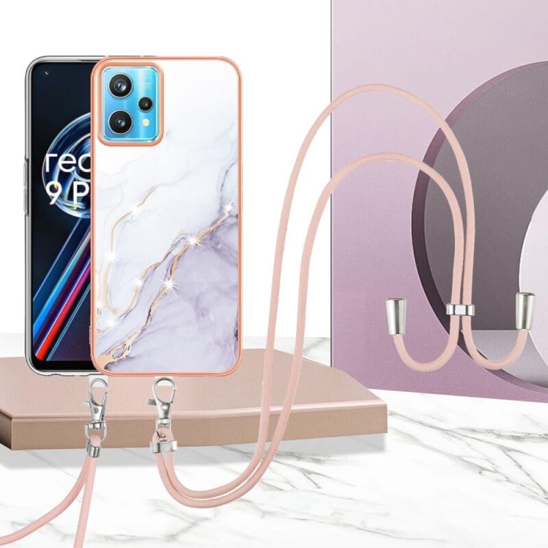 Θήκη τηλεφώνου TPU με σχέδιο μαρμάρου και ηλεκτρολυτική επικάλυψη για OPPO Realme 9 Pro 5G με κορδόνι (Μωβ 001)