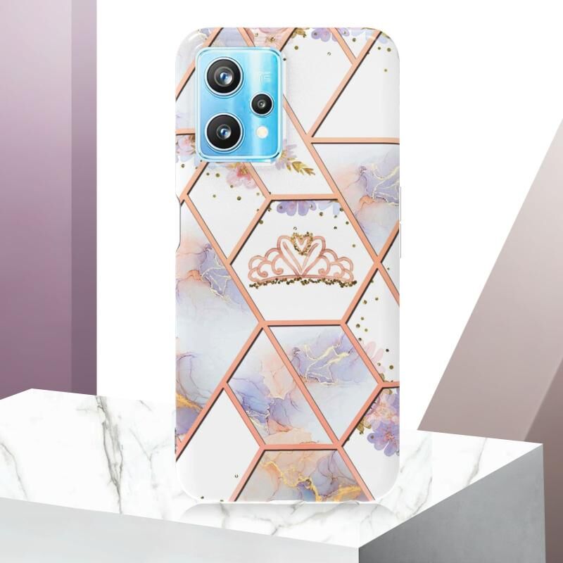 Θήκη τηλεφώνου TPU αντικραδασμική για OPPO Realme 9 Pro+ 5G με ηλεκτρολυτική επιμετάλλωση, συνδυασμό μαρμάρου και λουλουδιών (Crown)