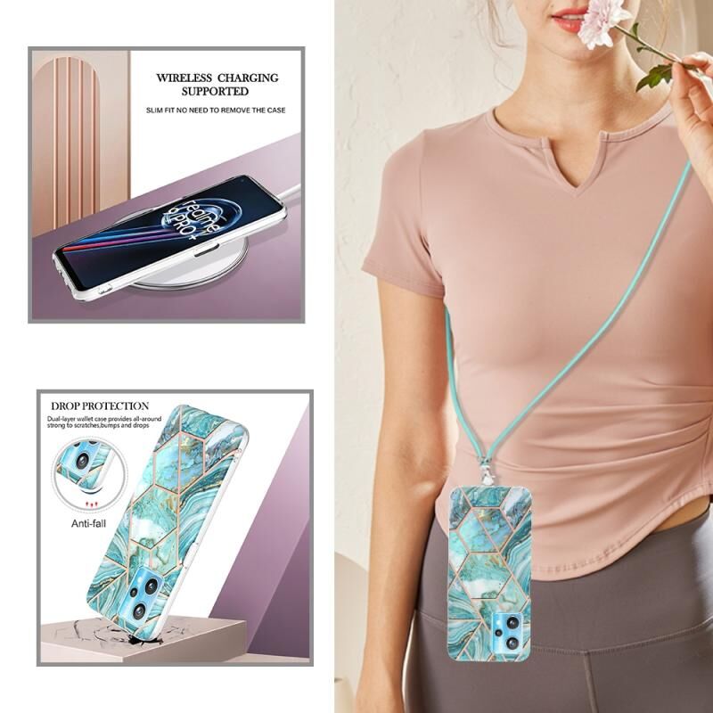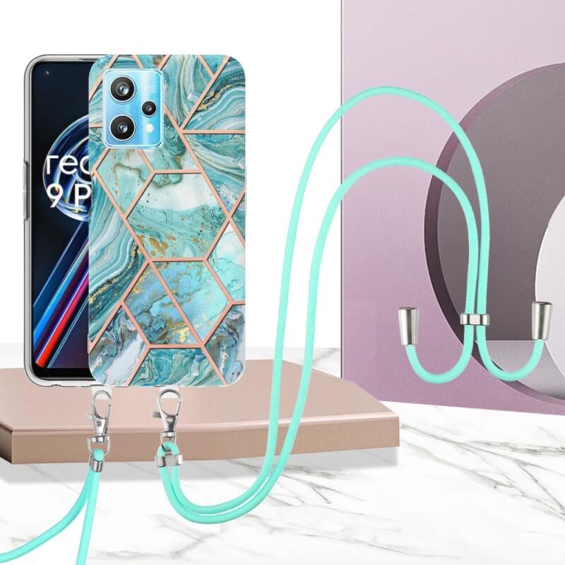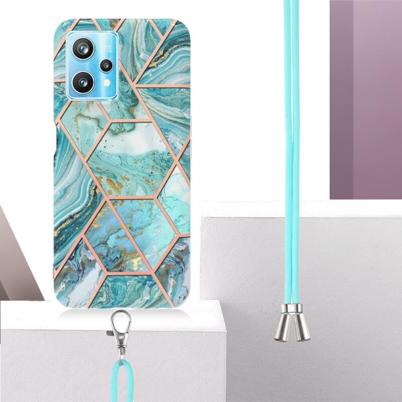 Θήκη τηλεφώνου TPU με ηλεκτρολυτική επιμετάλλωση και μαρμάρινη σύνθεση για OPPO Realme 9 pro + 5G με κορδόνι (Σκούρο Μωβ)