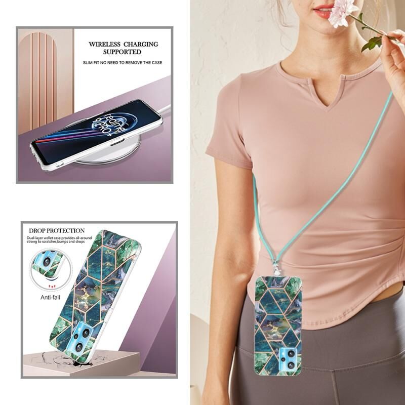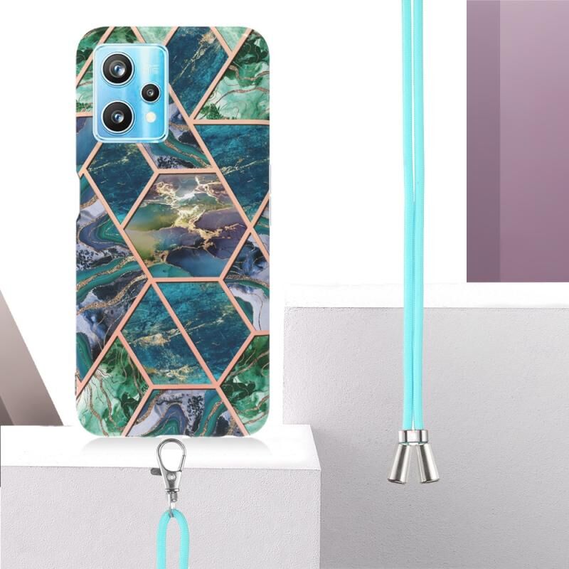 Θήκη τηλεφώνου TPU με ηλεκτρολυτική επιμετάλλωση και μαρμάρινη σύνθεση για OPPO Realme 9 pro + 5G με κορδόνι (Σκούρο Μωβ)