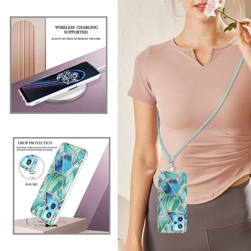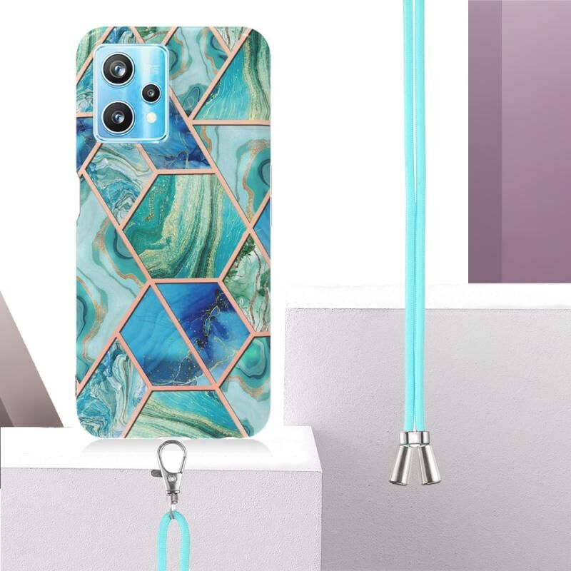 Θήκη τηλεφώνου TPU με ηλεκτρολυτική επιμετάλλωση και μαρμάρινη σύνθεση για OPPO Realme 9 pro + 5G με κορδόνι (Σκούρο Μωβ)
