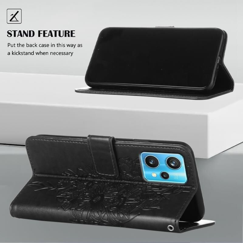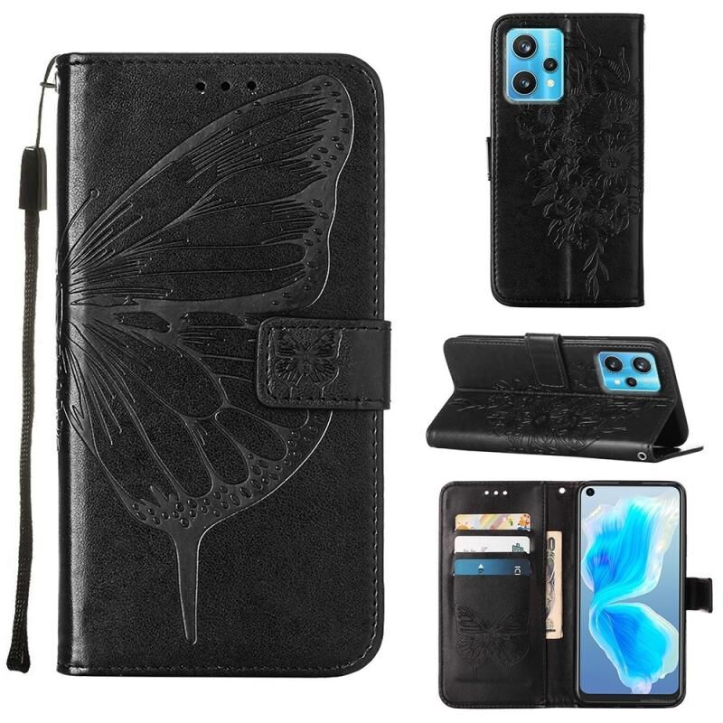 Θήκη τηλεφώνου από δέρμα με ανάγλυφο σχέδιο πεταλούδας για OPPO Realme 9 Pro+ 5G (Γκρι)
