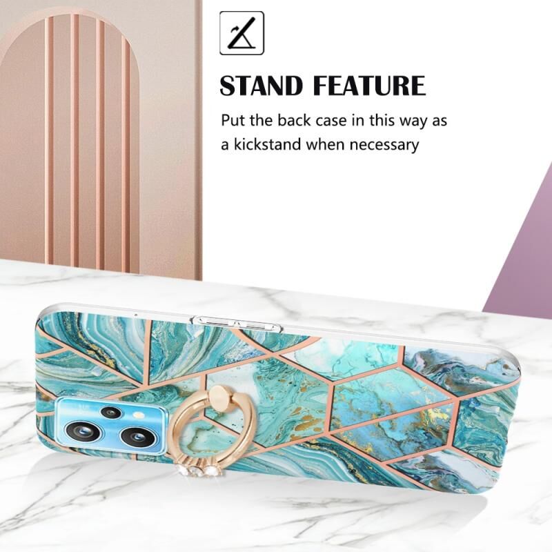 Θήκη για OPPO Realme 9 Pro 5G με σχέδιο μαρμάρου patchwork, διπλής όψης IMD TPU με δακτύλιο στήριξης (Ροζ Λευκό)