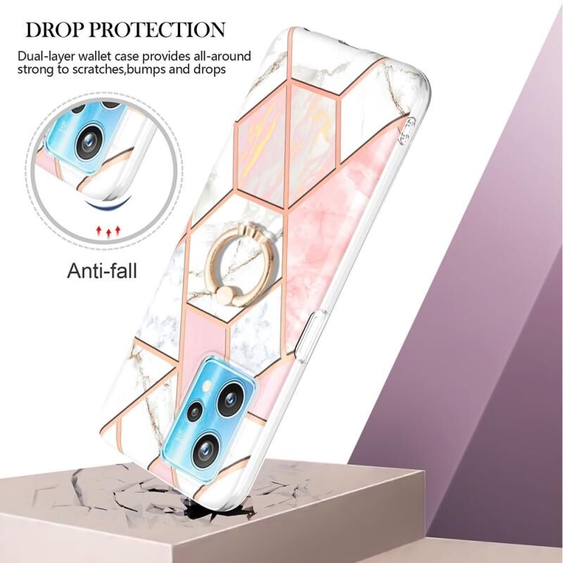 Θήκη για OPPO Realme 9 Pro 5G με σχέδιο μαρμάρου patchwork, διπλής όψης IMD TPU με δακτύλιο στήριξης (Ροζ Λευκό)