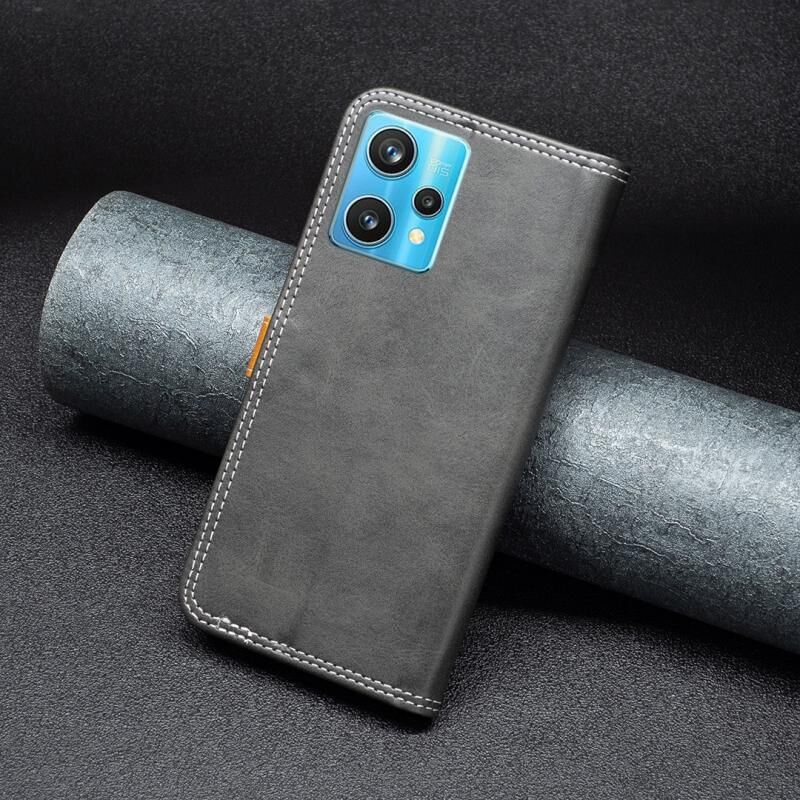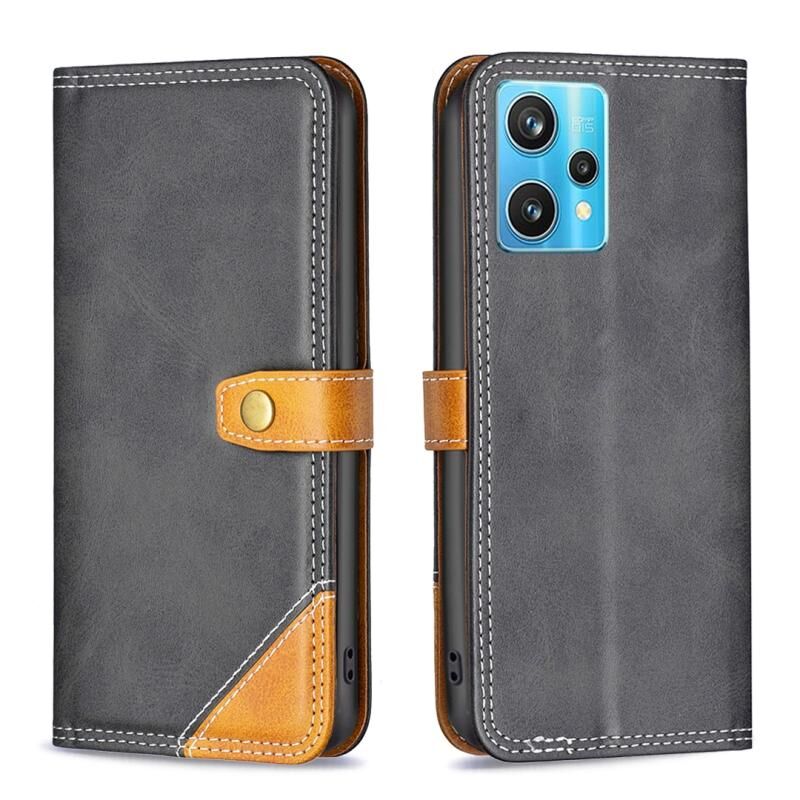 Θήκη τηλεφώνου από δέρμα με διπλή ραφή και αντιστοίχιση χρωμάτων για OPPO Realme 9 Pro+ (Μαύρο)