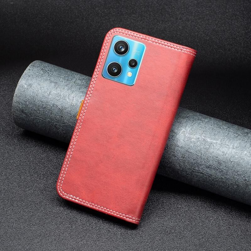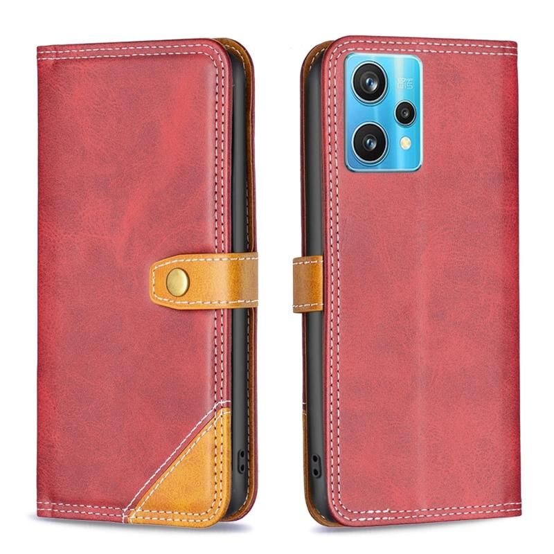 Θήκη τηλεφώνου από δέρμα με διπλή ραφή και αντιστοίχιση χρωμάτων για OPPO Realme 9 Pro+ (Μαύρο)