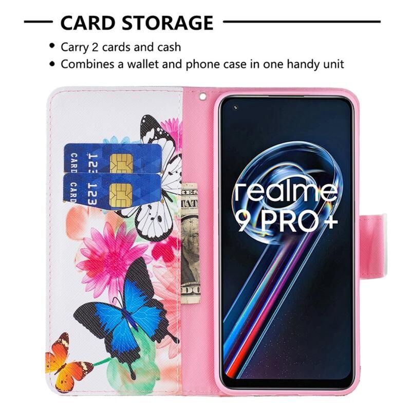 Θήκη τηλεφώνου από δέρμα με έγχρωμο σχέδιο (πεταλούδες) για OPPO Realme 9 Pro+