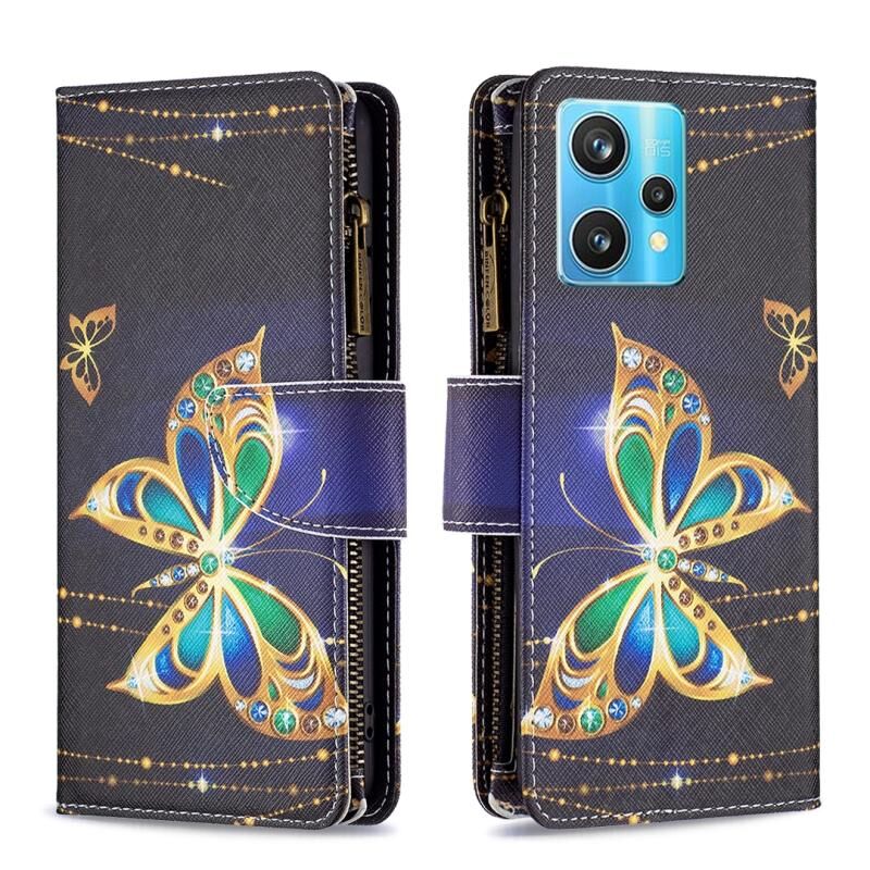Θήκη τηλεφώνου από δέρμα με φερμουάρ και πολύχρωμο σχέδιο για OPPO Realme 9 Pro+ (Μεγάλη Πεταλούδα)