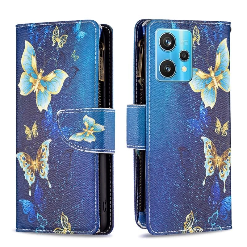 Θήκη τηλεφώνου από δέρμα με φερμουάρ και πολύχρωμο σχέδιο για OPPO Realme 9 Pro+ (Μωβ Πεταλούδα)