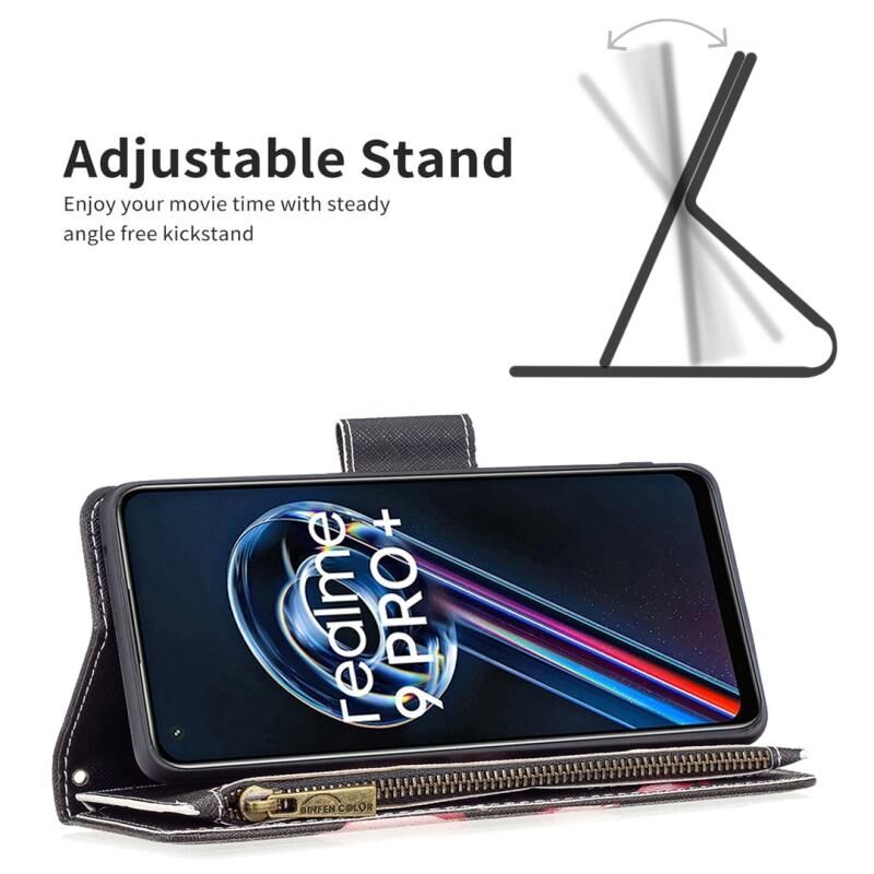 Θήκη τηλεφώνου από δέρμα με φερμουάρ και πολύχρωμο σχέδιο για OPPO Realme 9 Pro+ (Λωτός)
