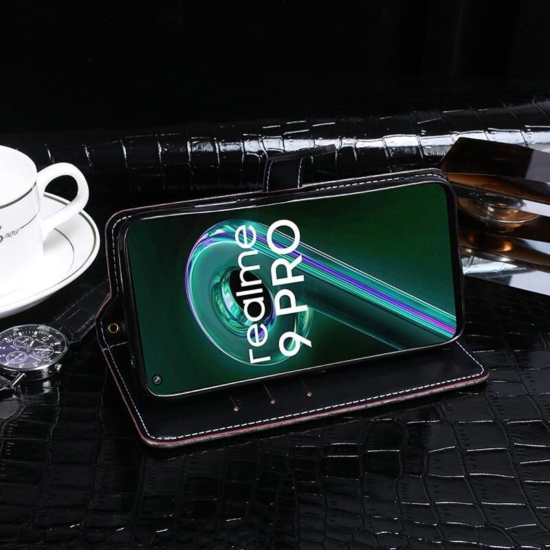 Θήκη τηλεφώνου από δέρμα με υφή κροκόδειλου idewei για OPPO Realme 9 Pro+ (Μαύρο) (idewei)