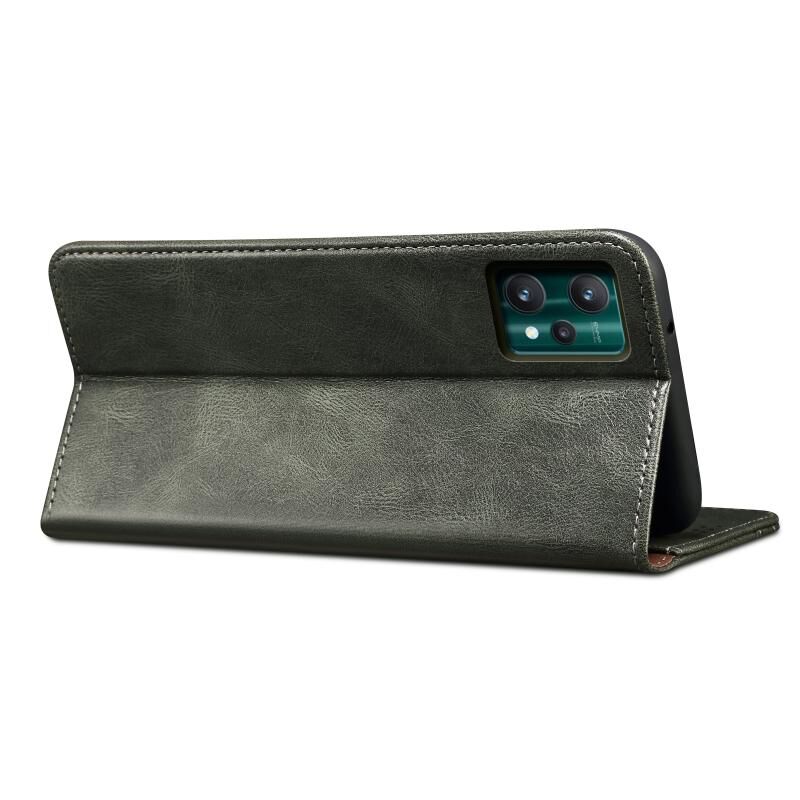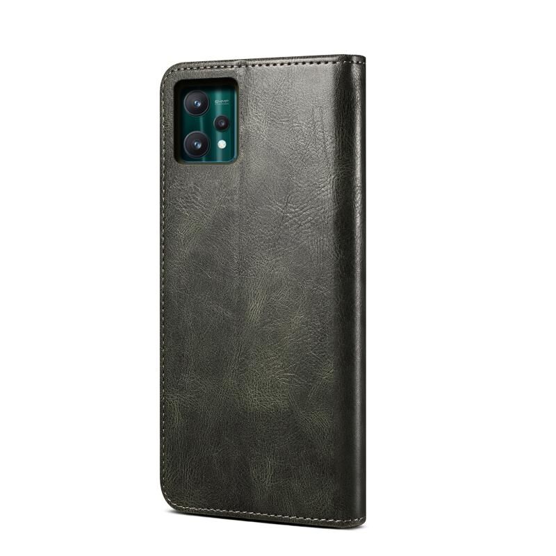 Θήκη τηλεφώνου από δέρμα με οριζόντιο άνοιγμα για OPPO Realme 9 Pro, απλή, με υφή Crazy Horse και υποδοχές για κάρτες & βάση στήριξης (Σκούρο Πράσινο)
