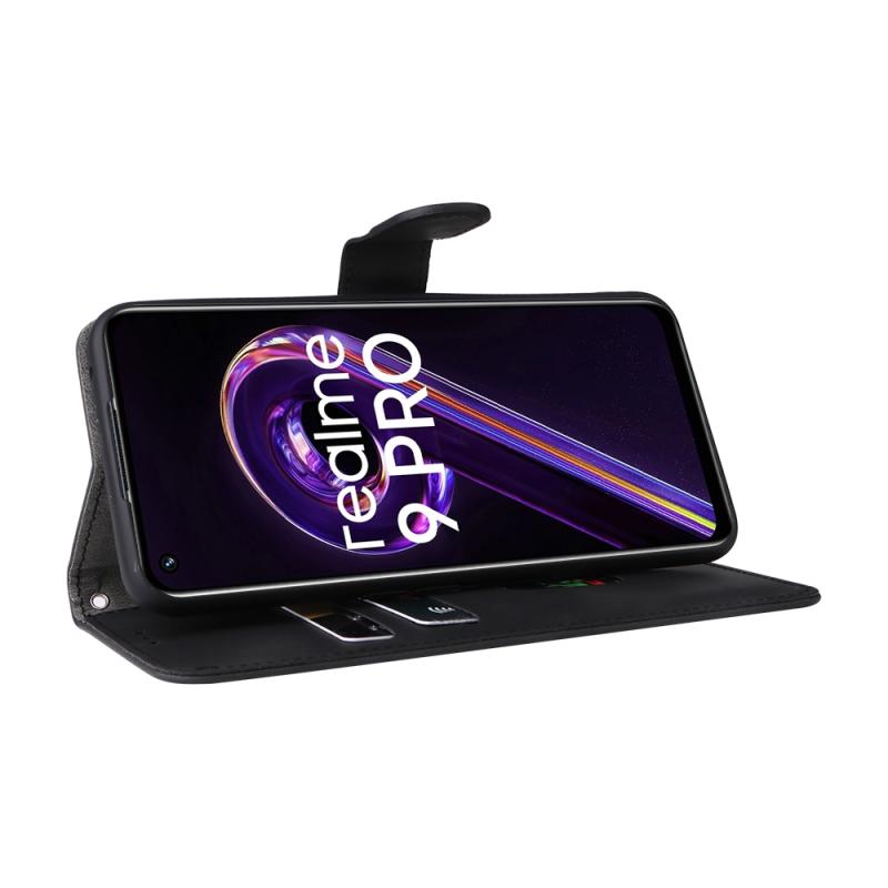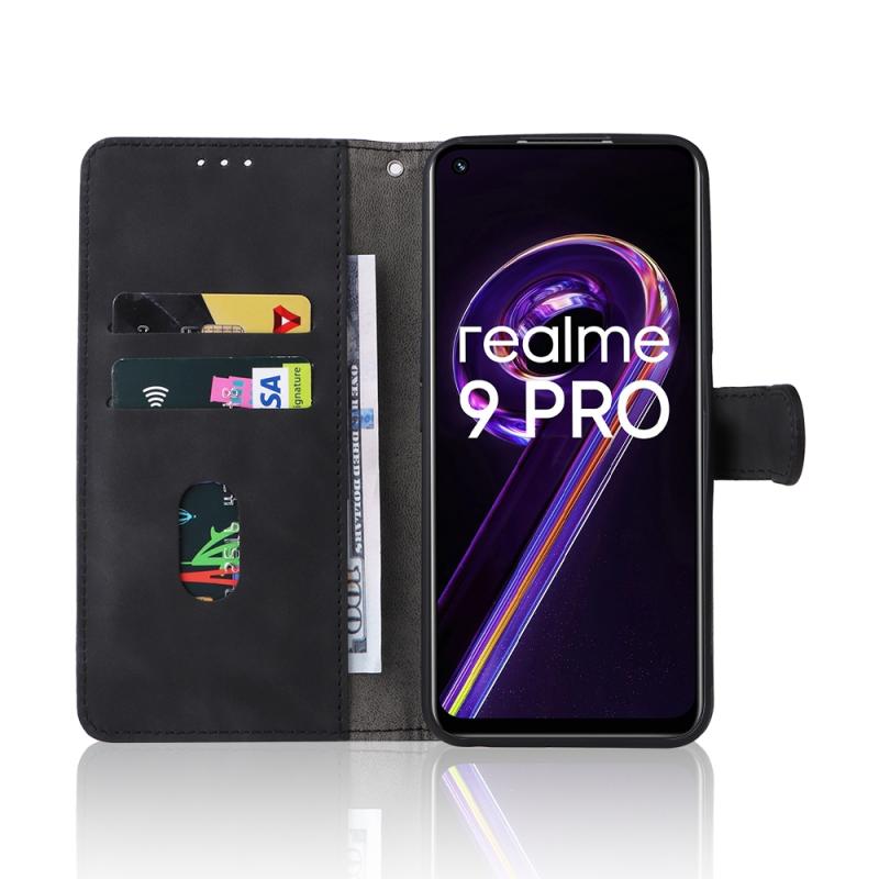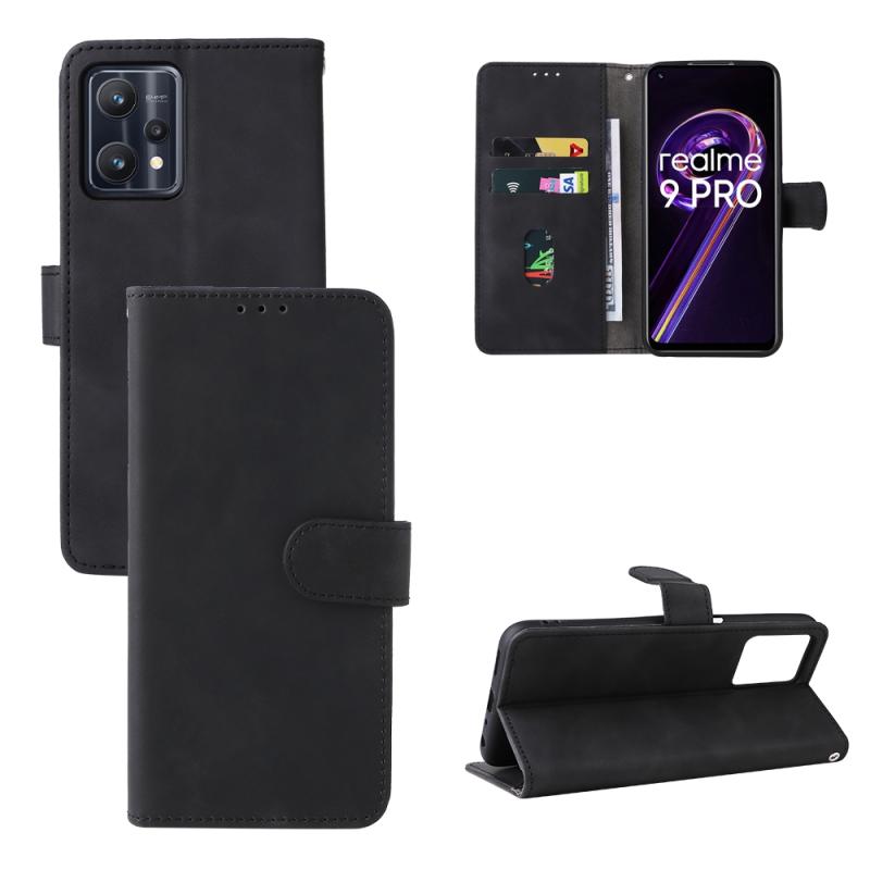 For OPPO Realme 9 Pro Skin Feel Magnetic Buckle Calf Texture Leather Phone Case(Black)
