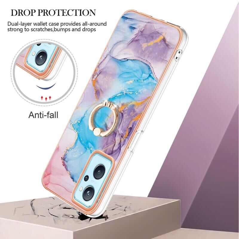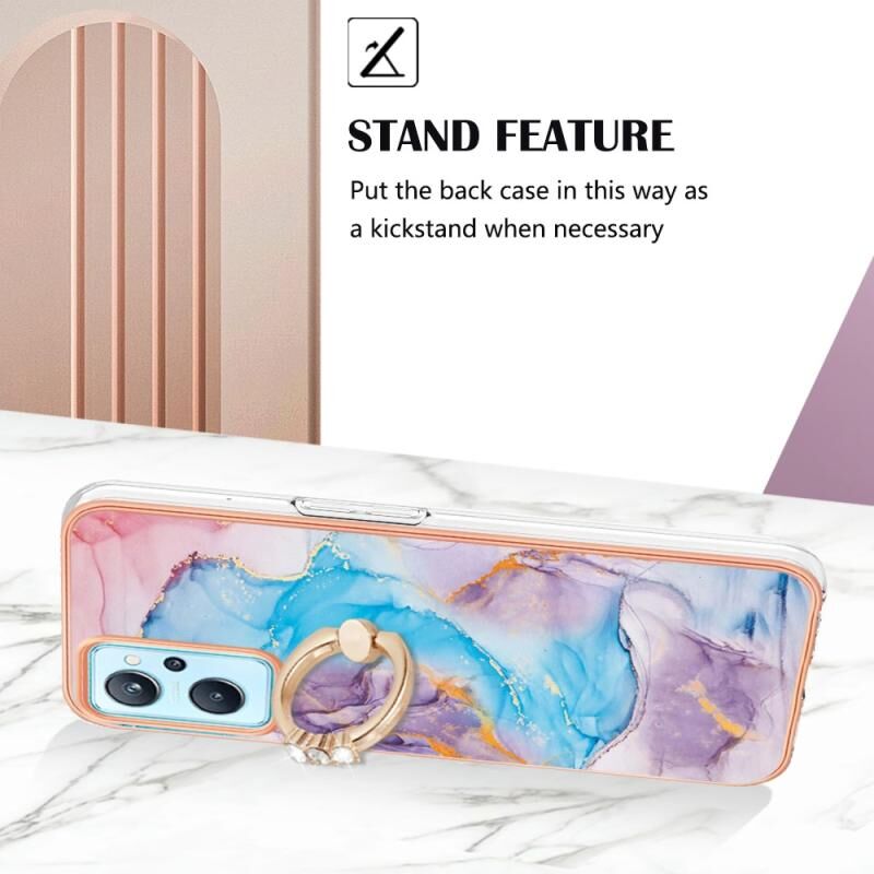 Θήκη τηλεφώνου TPU με δακτύλιο και ηλεκτρολυτική επιμετάλλωση IMD για OPPO Realme 9i / A36 / A96 4G (Λευκό Μάρμαρο)