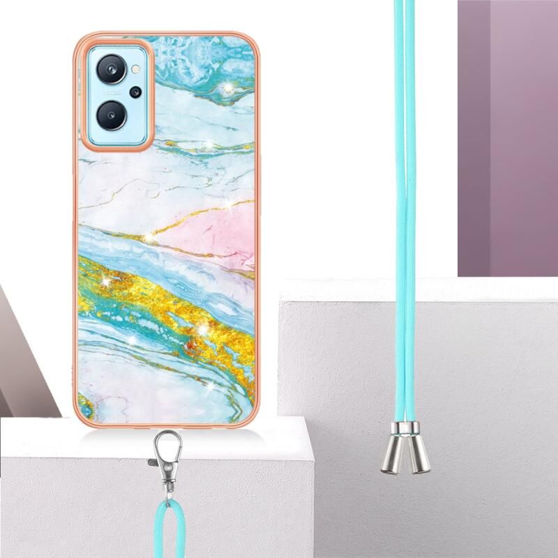 Θήκη τηλεφώνου TPU με σχέδιο μαρμάρου και ηλεκτρολυτική επικάλυψη για OPPO Realme 9i / A36 / A96 4G με κορδόνι (Μωβ 001)