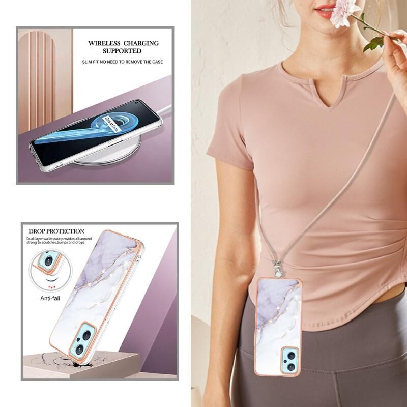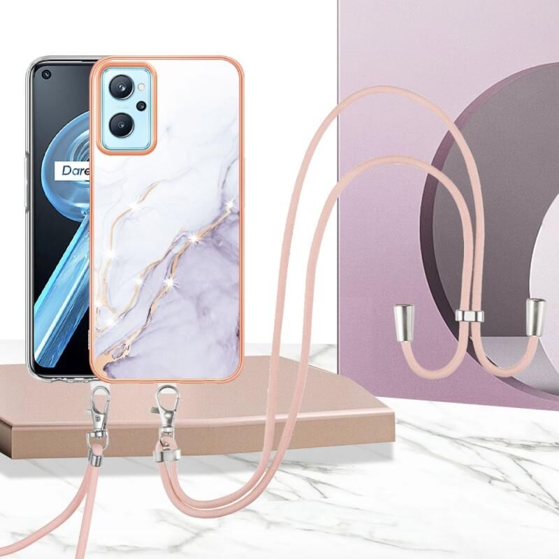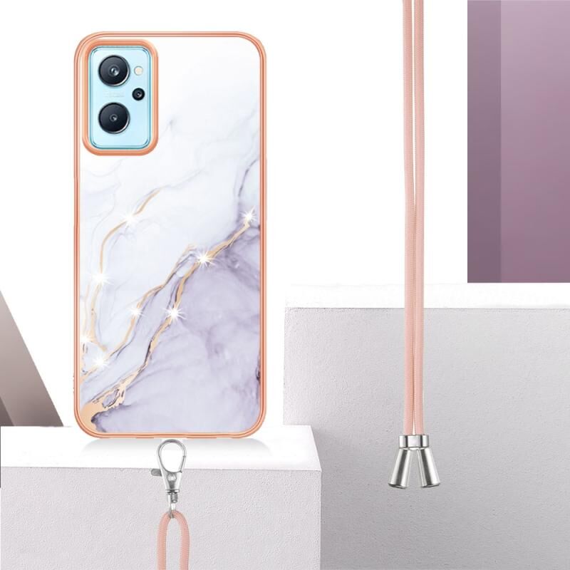 Θήκη τηλεφώνου TPU με σχέδιο μαρμάρου και ηλεκτρολυτική επικάλυψη για OPPO Realme 9i / A36 / A96 4G με κορδόνι (Μωβ 001)